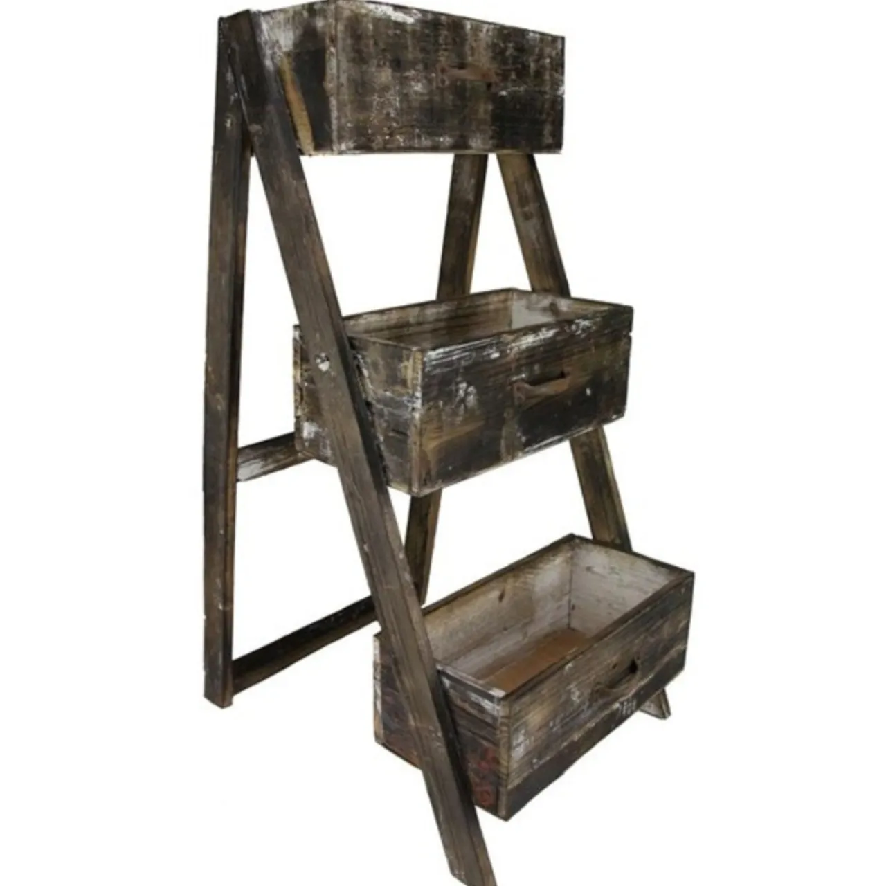 Marvel in the creative take on repurposed materials that is a wood drawer box ladder planter! This piece combines the wooden drawers and vintage ladder into an undeniably striking planter. Your plants will be right at home in this unprecedented planter approach, and with the gorgeous brown whitewash finish, this piece will fit in with every garden setup imaginable!