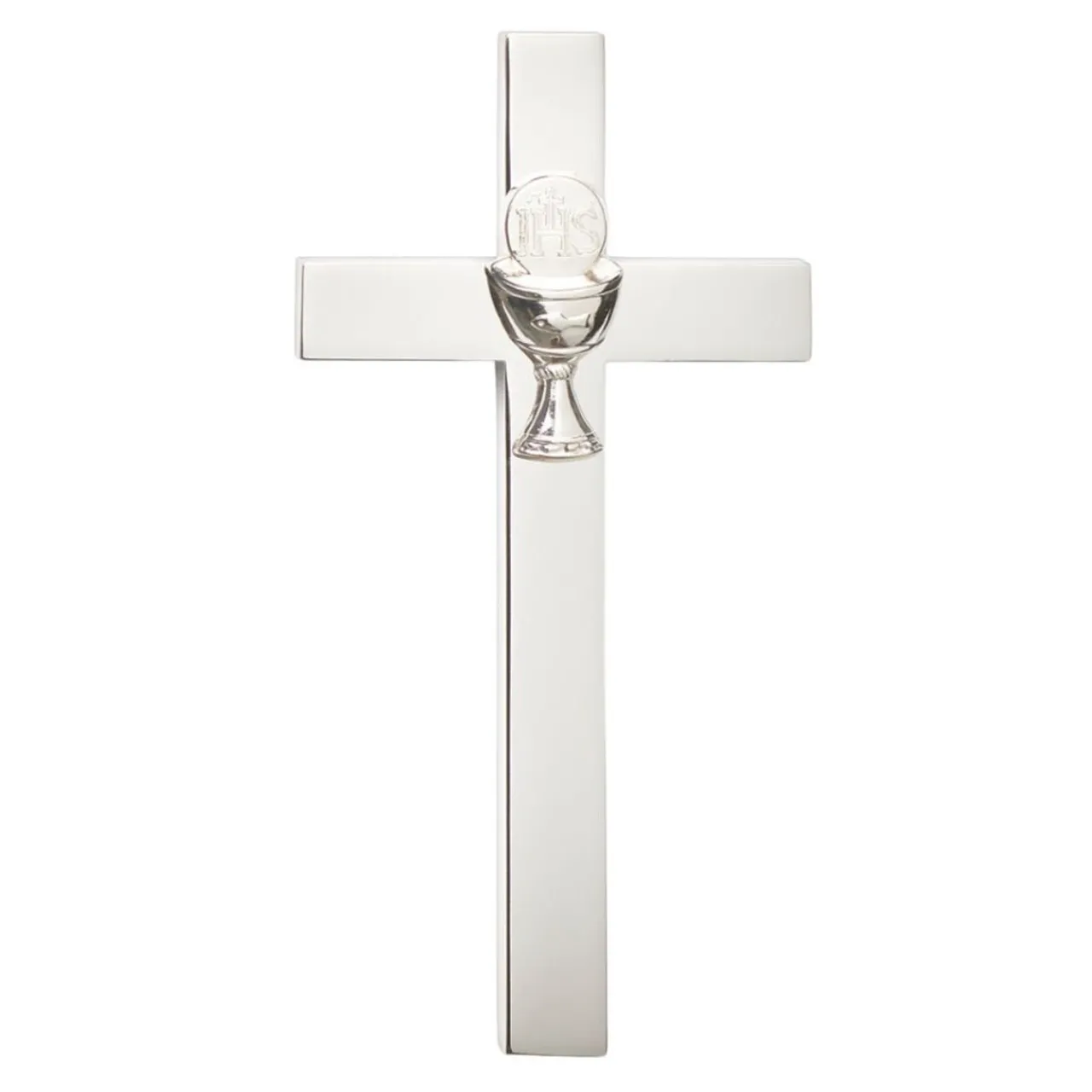 Celebrate a special milestone with this 1st Communion Cross. Crafted with a sleek, polished finish, this elegant cross features a chalice and host emblem, symbolizing the sacred sacrament.