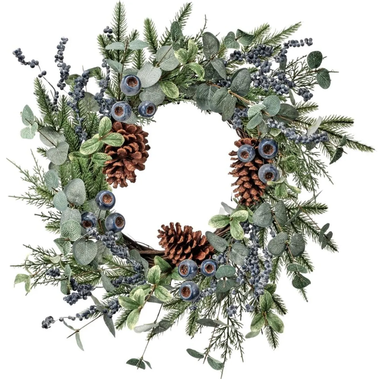 This blueberry/ pod wreath is the perfect addition to any front door this season. The blueberries and pine cones add such a rustic touch to what would be considered your “normal” wreath. Natural look, beautifully made, everything you need.