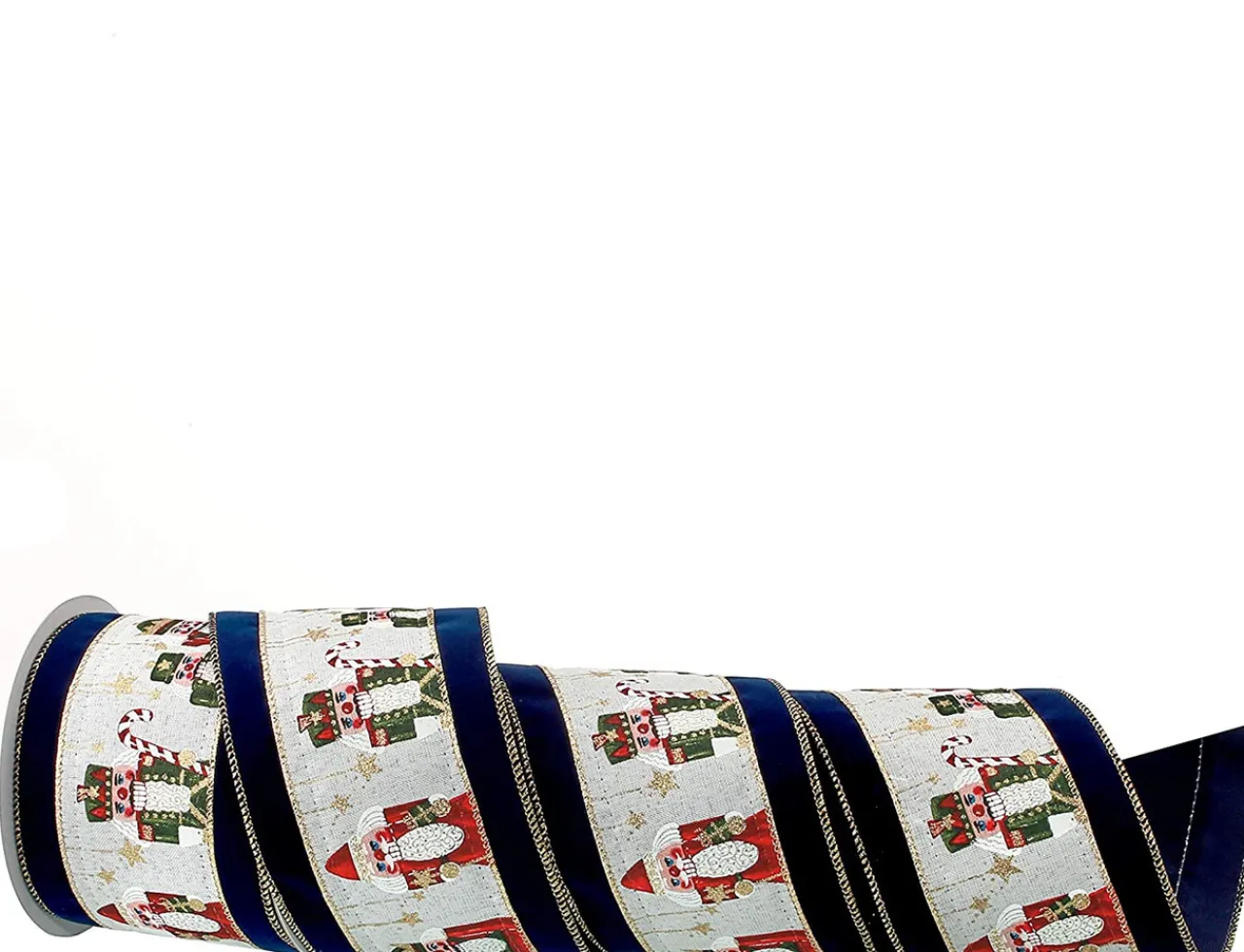 - 4″ X 10 Yard Nutcracker Velvet/Gold Back Wired Ribbon – Navy