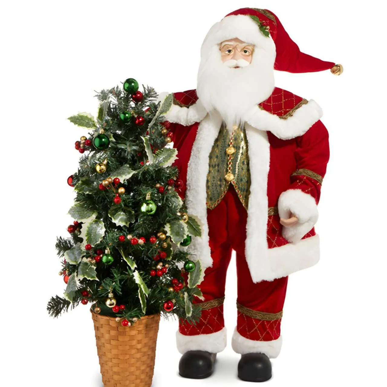 Bring holiday cheer to your home with our 36″ Charming Santa with Tree! This jolly figure features Santa in his classic red suit, complete with a festive hat and a beautifully decorated Christmas tree.