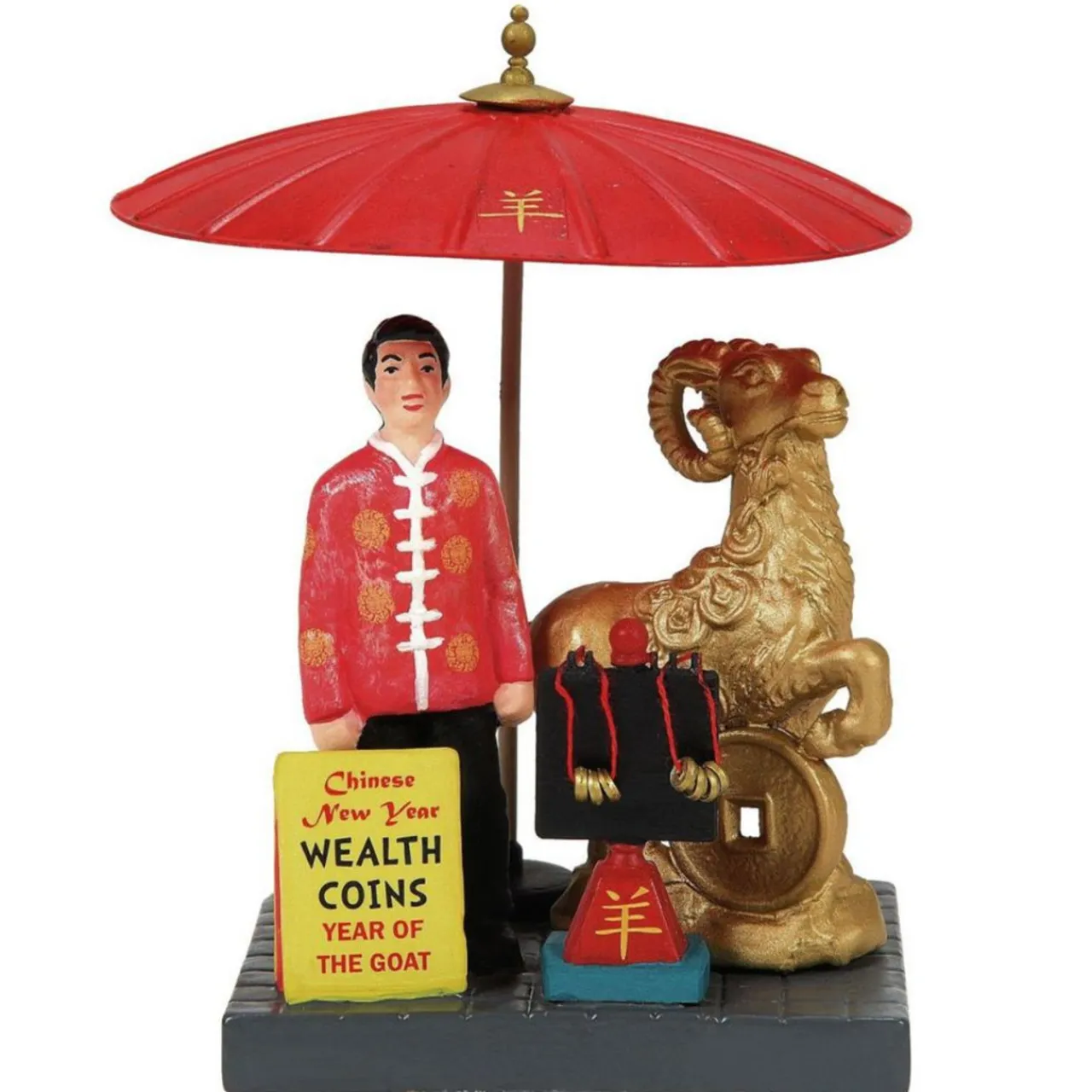 Celebrate the Chinese New Year with Luck Necklaces Are The Goat from Department 56’s Christmas In The City collection. This vibrant figurine features a golden goat statue, a striking red umbrella, and festive wealth coin necklaces to mark the Year of the Goat.