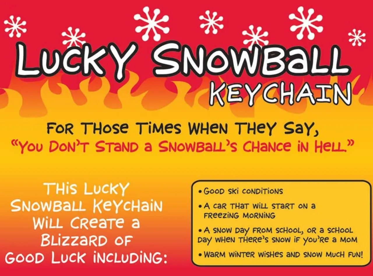 Lucky snowball keychain provides a blizzard of good fortune. Faux fur key ring in decorative packaging makes a great gift for snow lovers.