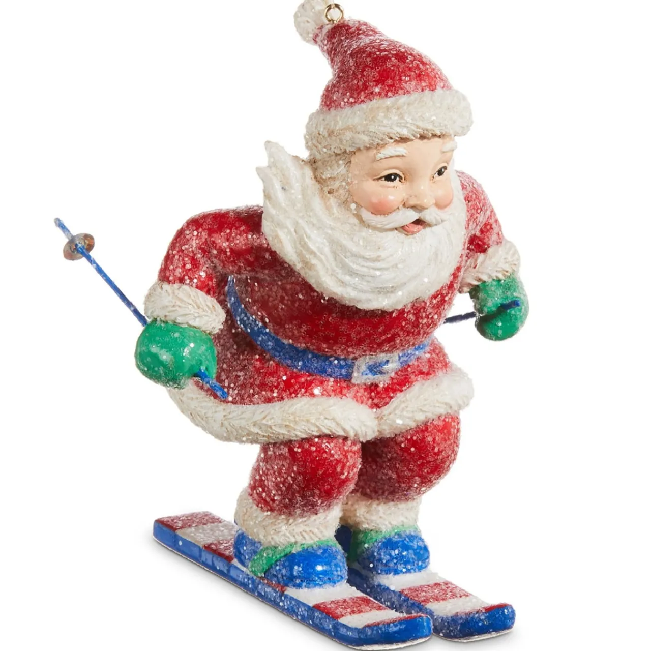 This fun skiing Santa ornament is a must-have this holiday season. Dressed in his red favorite Santa outfit with some added winter gear, he is ready to hit the slopes. The snowman comes ready to hang and take center stage on your tree this Christmas.