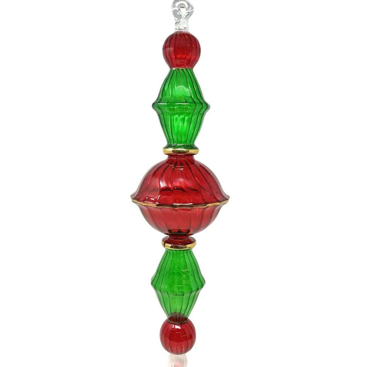 Add a festive touch to your holiday decor with the Egyptian Museum Jumbo Red and Green Swirl Glass Ornament. This impressive ornament features a vibrant swirl design in traditional Christmas colors, accented with elegant gold details.