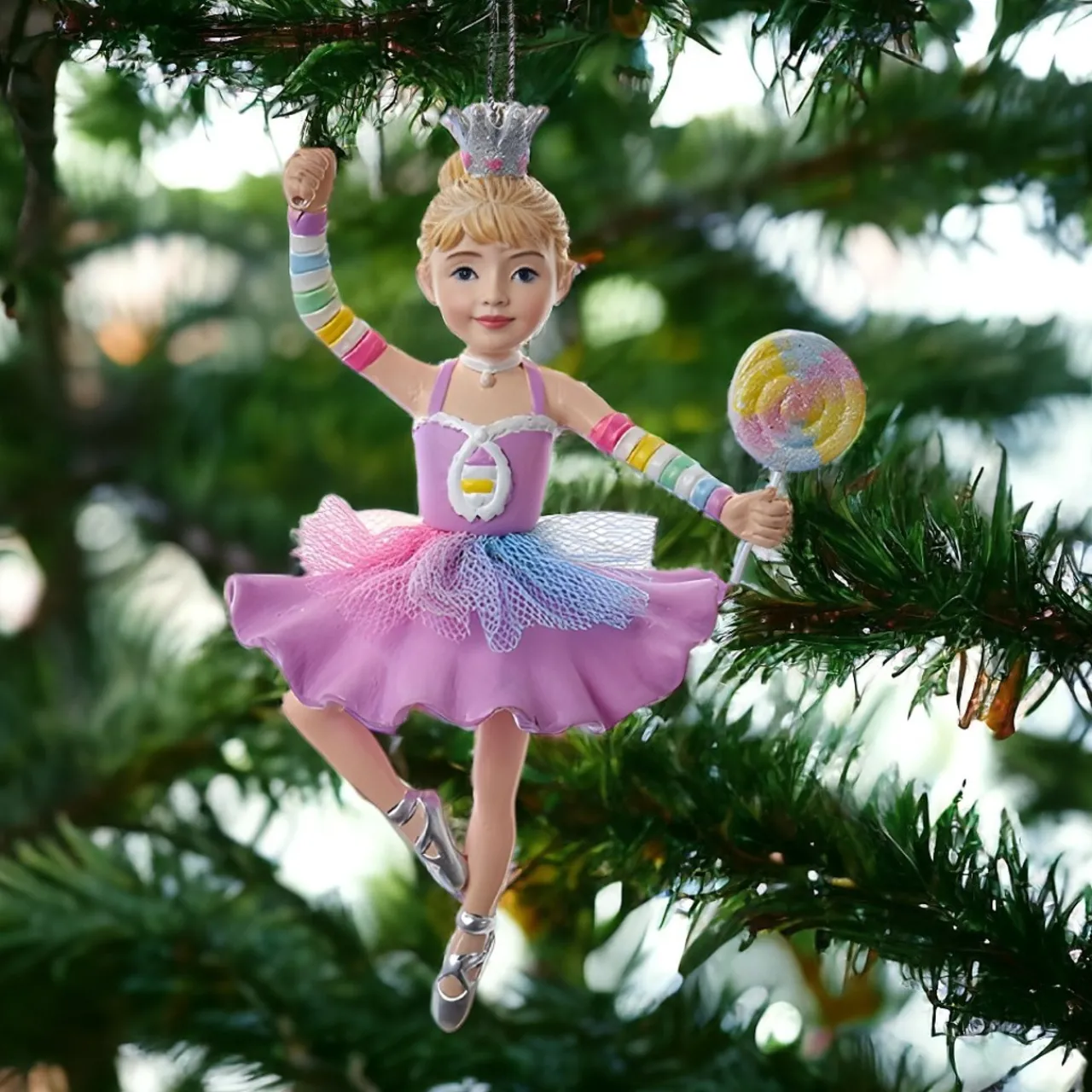 Meet the sweetest addition to your holiday decor: our Lollipop Ballerina Ornament. Standing 5 inches tall, this resin-crafted dancer, adorned with fabric mache and a sprinkle of plastic whimsy, promises to pirouette into your heart.