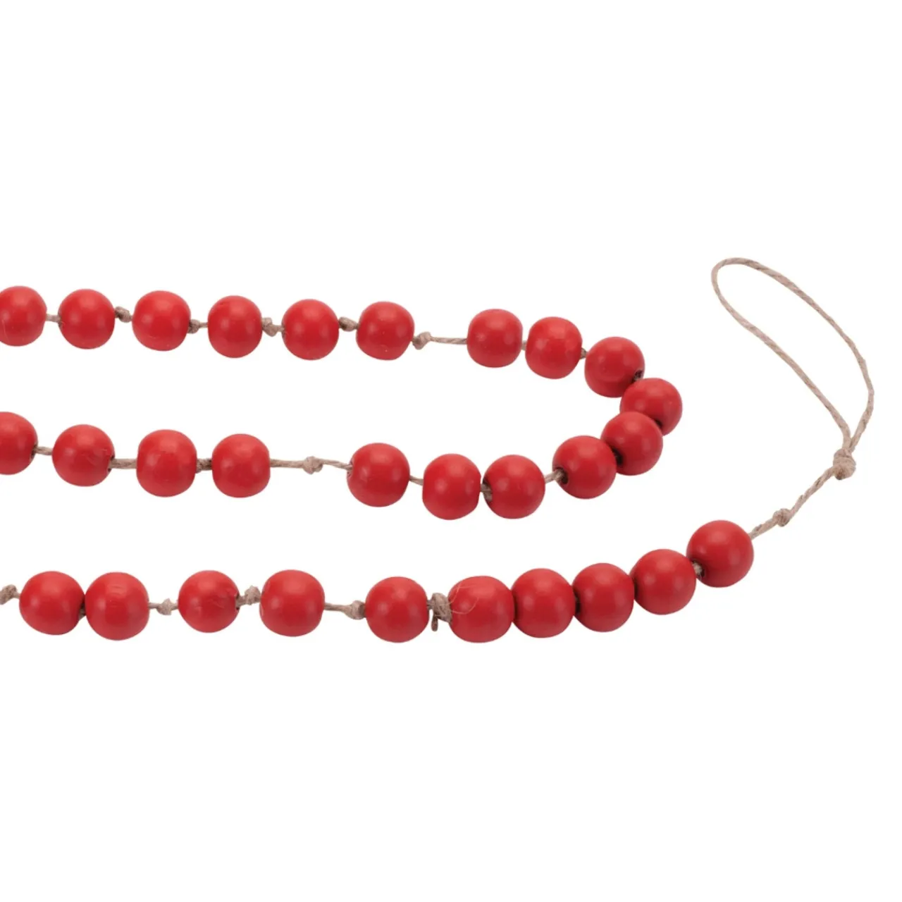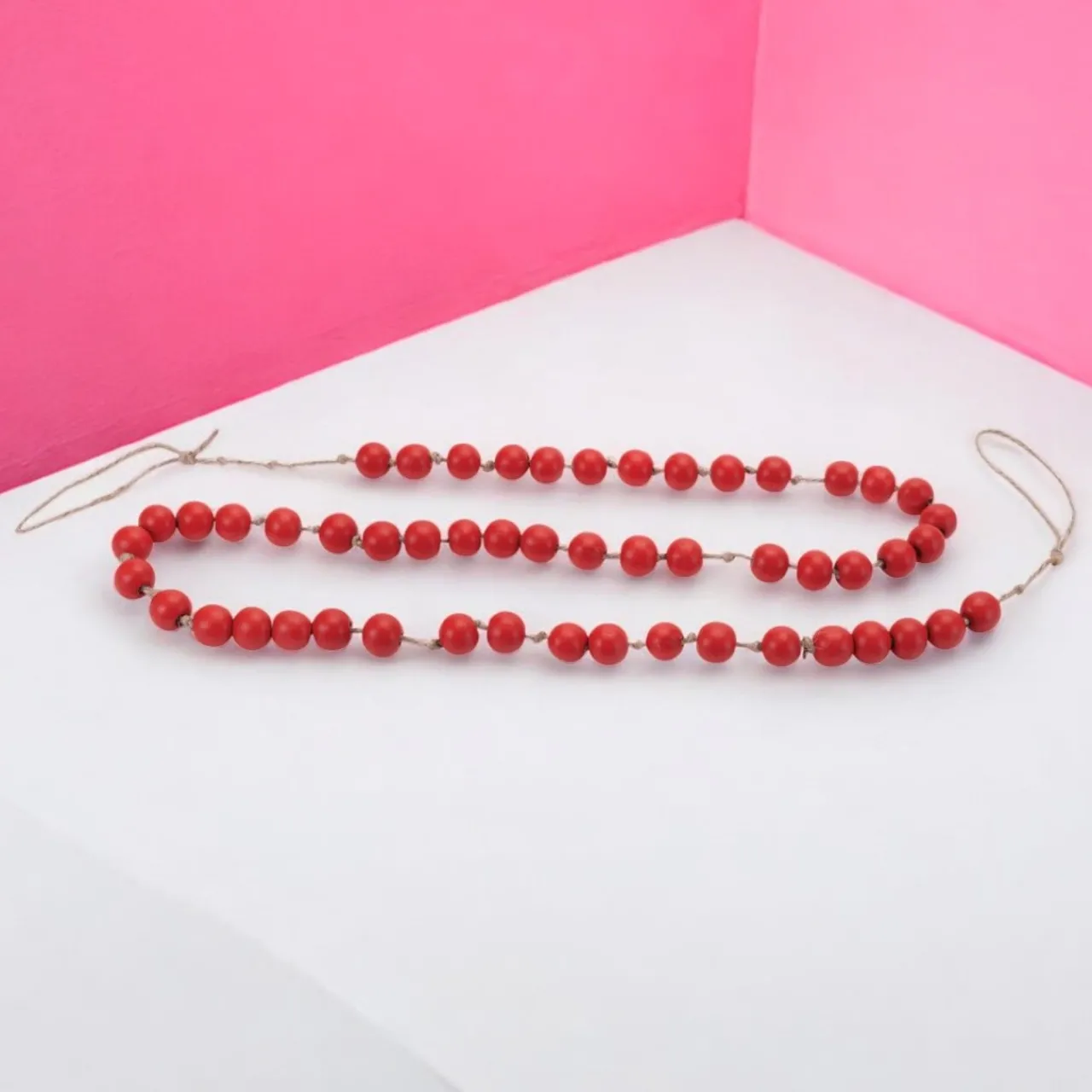 Bring a rustic touch to your holiday decor with this 5-foot Red Bead Garland. Made from wood beads strung on sturdy jute rope, this versatile garland adds a pop of festive red to your tree, mantel, or tabletop display.