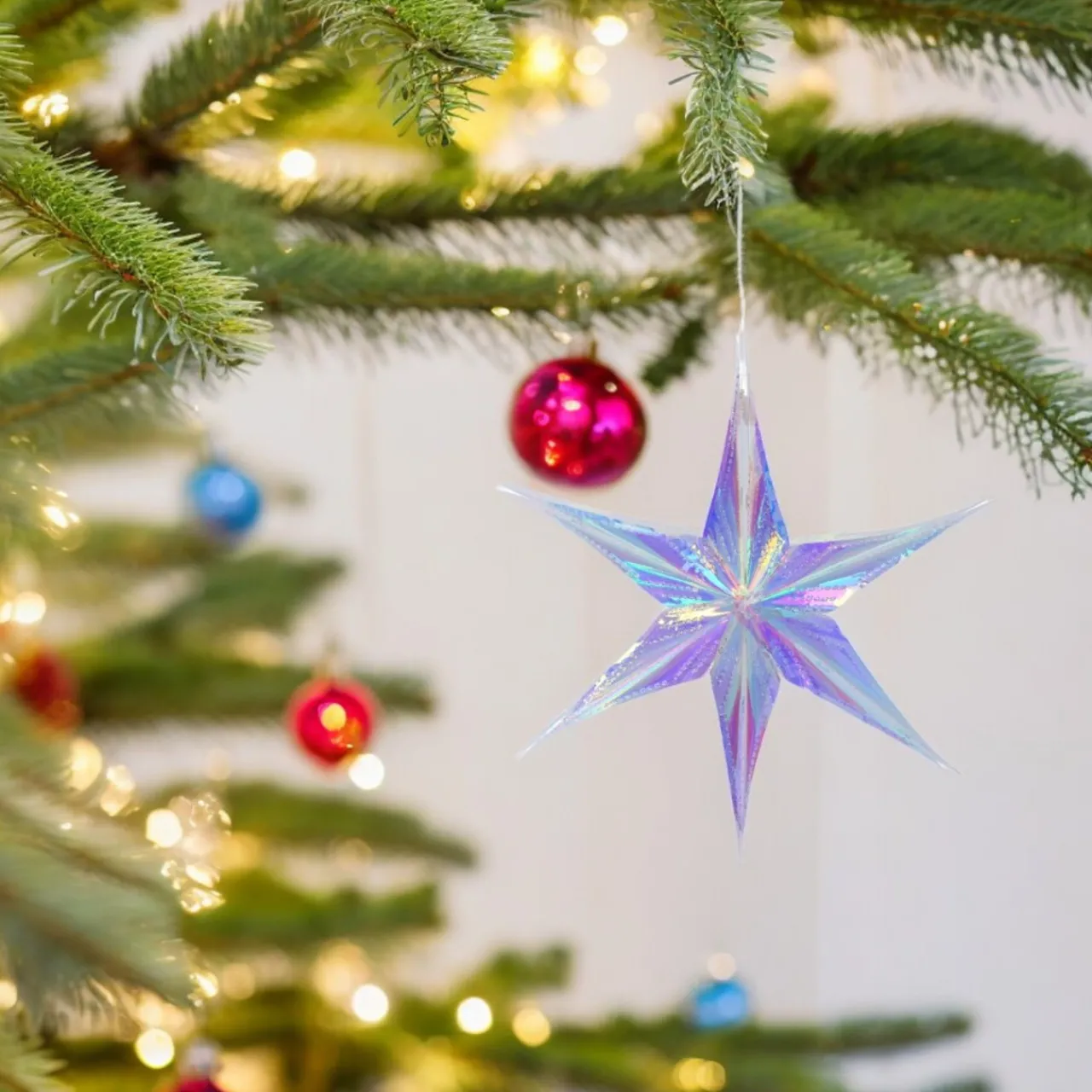 Add a touch of magic to your holiday decor with this Small Iridescent Star Ornament. Measuring 6 inches, this beautiful plastic star features a mesmerizing iridescent finish that reflects light brilliantly.