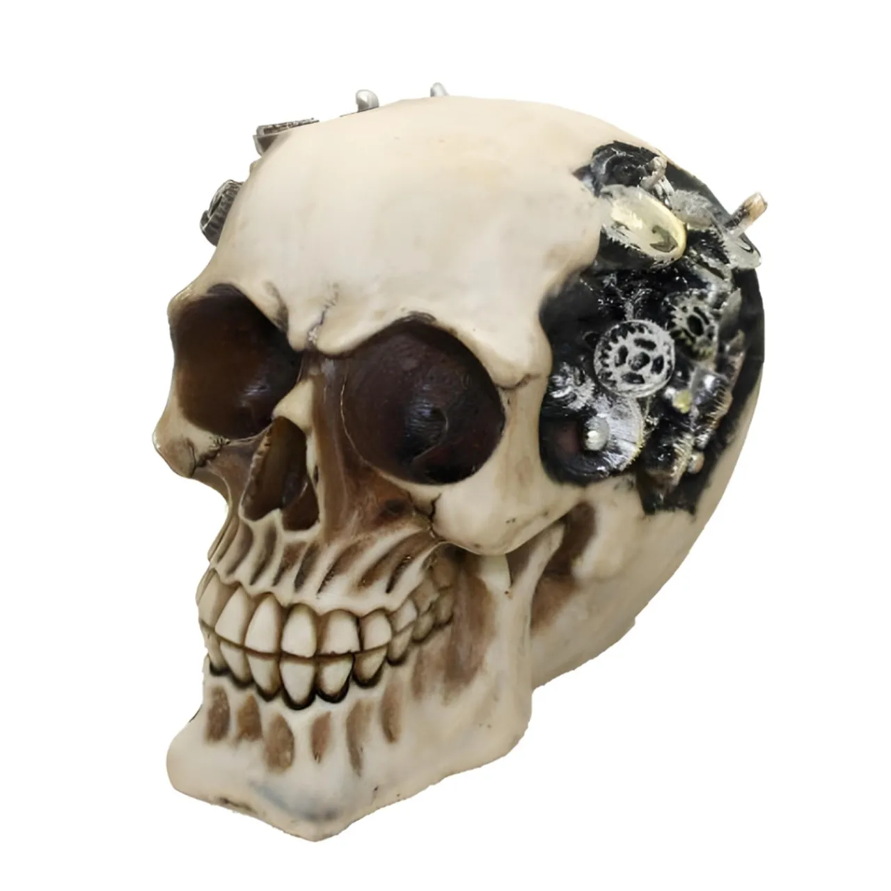 Unleash industrial chic with the Steampunk Skull, a polyresin marvel sized at 5.5″ X 3.5″ X 5″. Adorned with nuts, bolts, and gears, it’s hand-painted for a one-of-a-kind decor piece that combines Gothic flair with a mechanical twist. A must-have for any steampunk enthusiast’s collection.