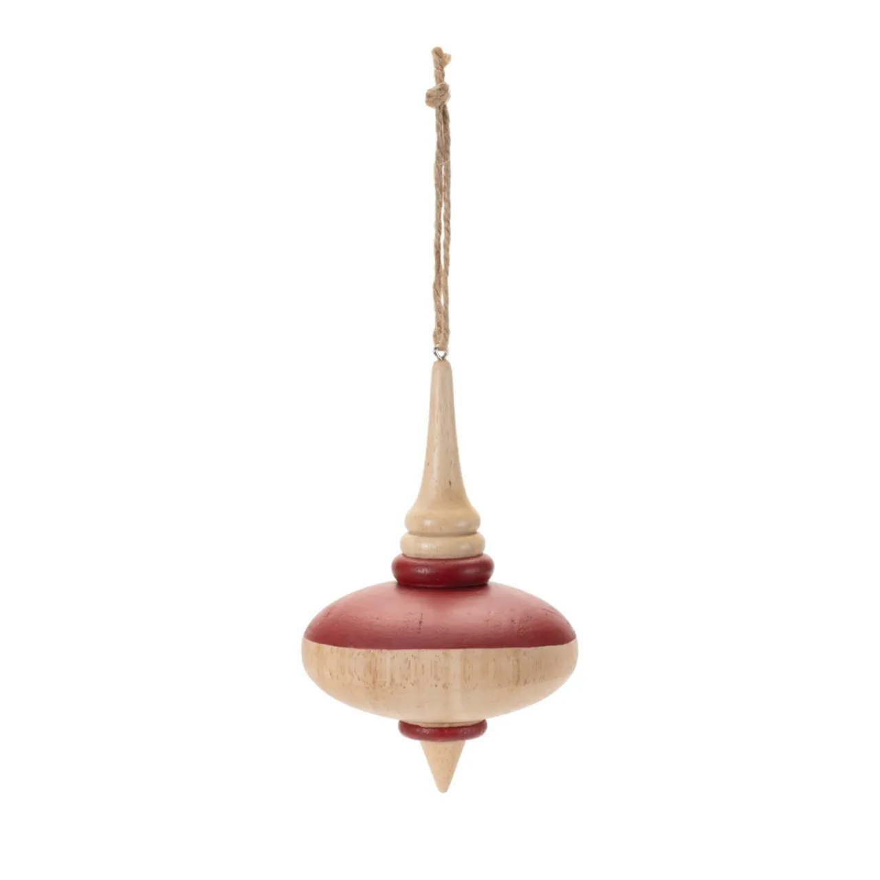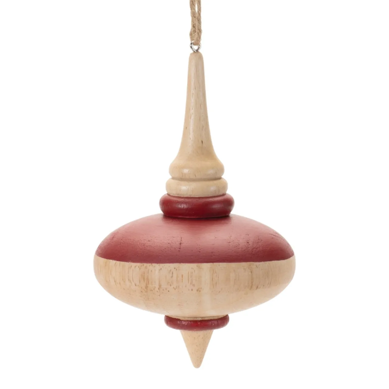 Bring rustic charm to your holiday décor with this handcrafted Turned Wood Ellipse Ornament. Measuring 5 inches tall, this beautiful ornament features a natural wood finish with a touch of red paint, giving it a timeless appeal.