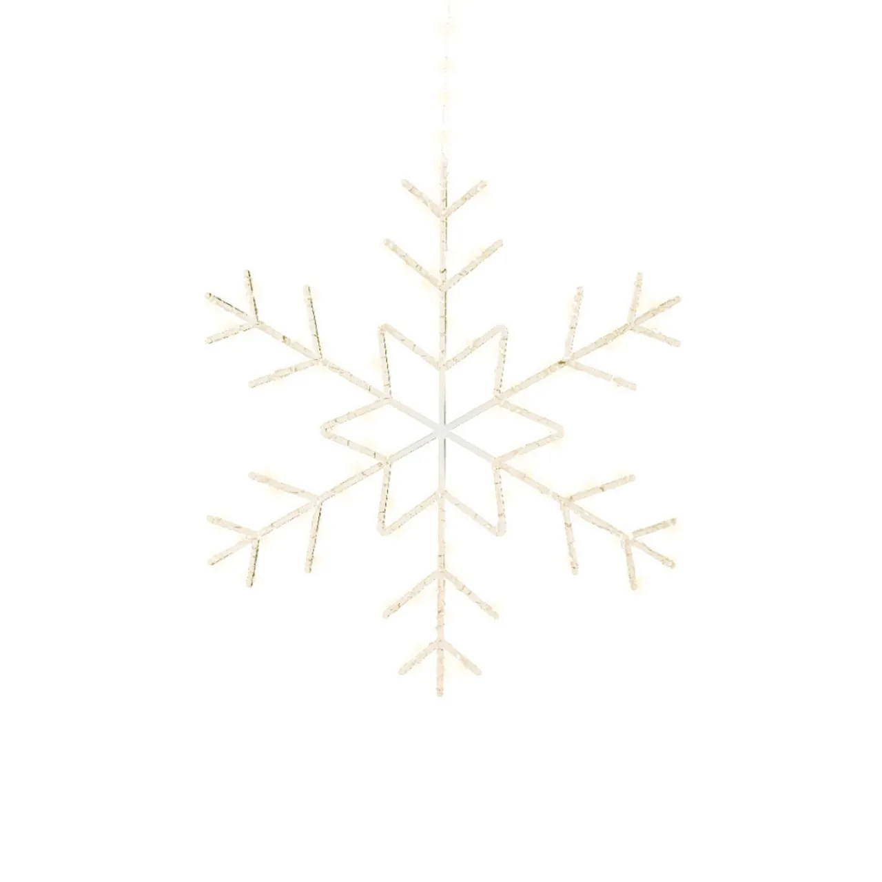 Illuminate your home with the festive charm of our 125 LED Warm White Snowflake. Measuring 23.6 inches in diameter, this stunning decoration features warm white LED lights on a transparent wire, perfect for both indoor and outdoor use.