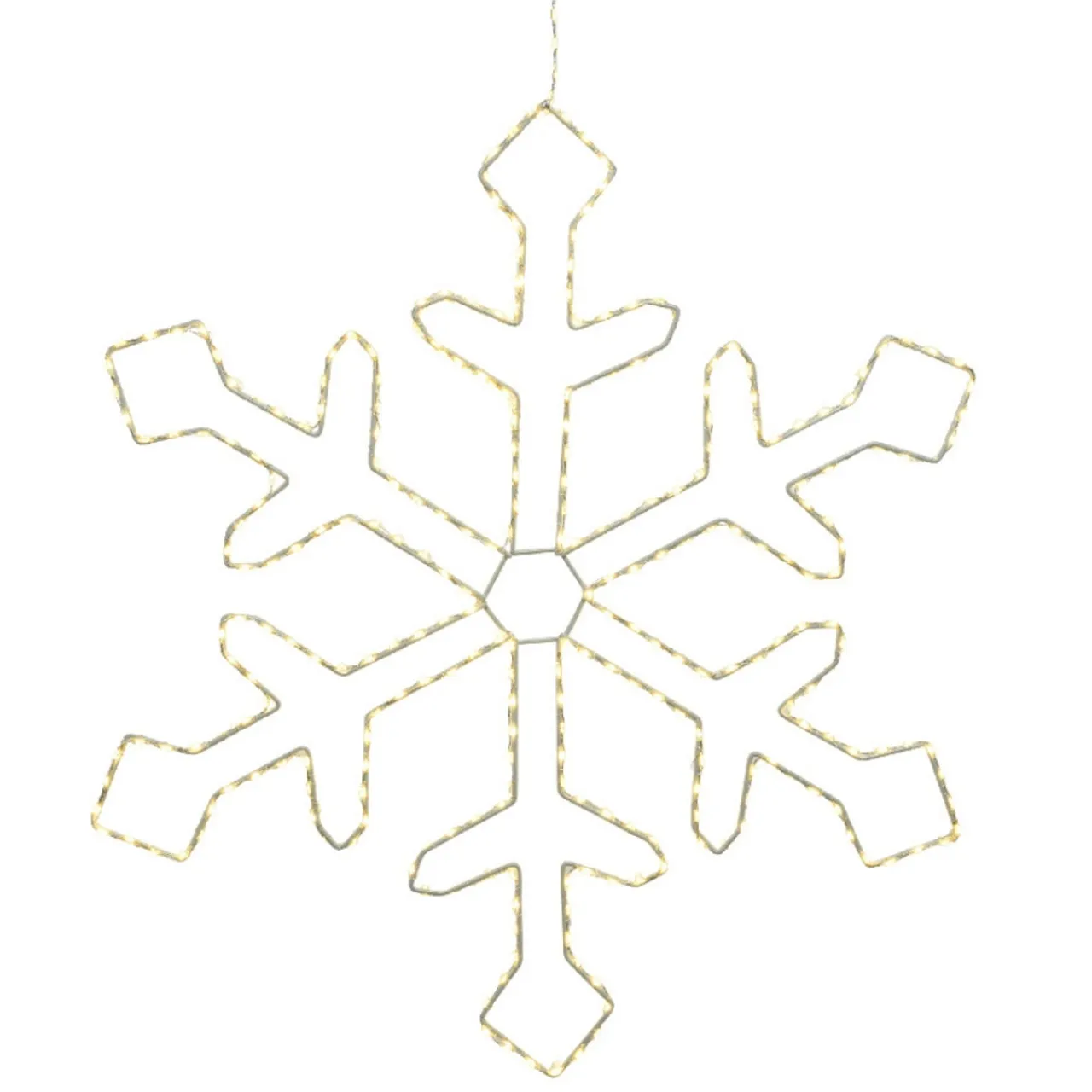 Illuminate your space with the brilliance of our 220 LED Metal Frame Hanging Snowflake, a radiant embodiment of wintry elegance. Spanning 14.5 inches in diameter, this meticulously crafted piece emits a warm white glow, capturing the cozy essence of the festive season. Both functional and decorative, it’s designed for indoor and outdoor settings, making it a versatile addition to any holiday decor. The steady lights ensure consistent luminosity, elevating the ambiance of any setting. Plus, with an electric adapter included, setting up this glowing masterpiece is effortlessly convenient.