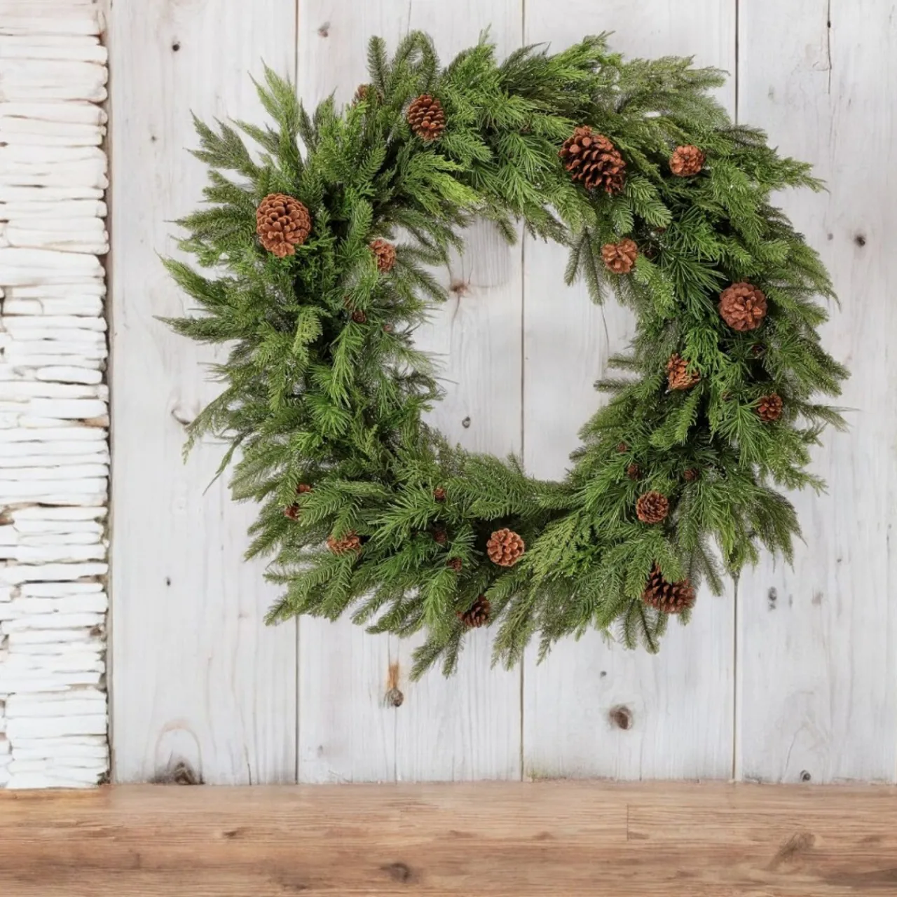 - Material: Mixed Evergreen, Pinecones