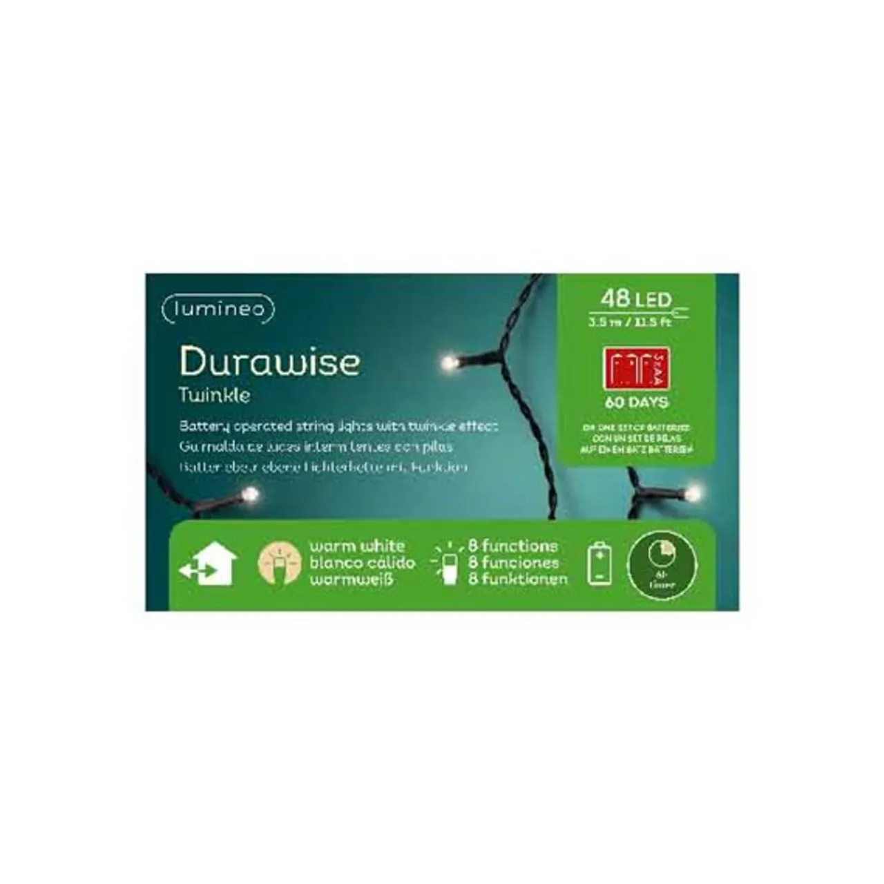 - Lumineo 48 LED Battery Operated Warm White Twinkle Lights Black Wire