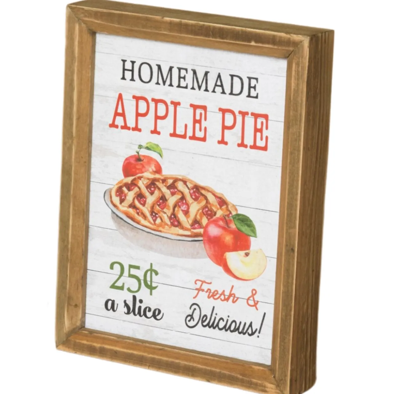 Introducing our Apple Cider Harvest Block Sign, a wooden block sign with the sentiment “Homemade Apple Pie Fresh And Delicious!” Add a touch of warmth and nostalgia to your home decor with this charming sign. Crafted from high-quality wood, it showcases a timeless design that celebrates the flavors of autumn. Display it on a shelf, or countertop, or hang it on a wall to evoke memories of homemade apple pie. The sturdy construction ensures durability, making it a lasting accent piece. Embrace the deliciousness of fresh apple cider and the joy of homemade treats with this delightful block sign.