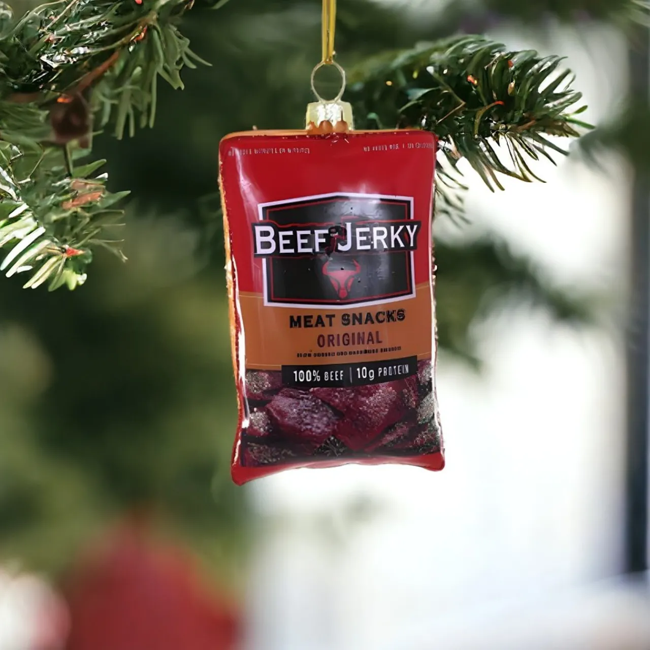 Crafted with care, it replicates the look of a real beef jerky pack, complete with protein-packed goodness. Hang this playful piece to celebrate your love for snacks in style, because who says your tree can’t be as unique as your palate?
