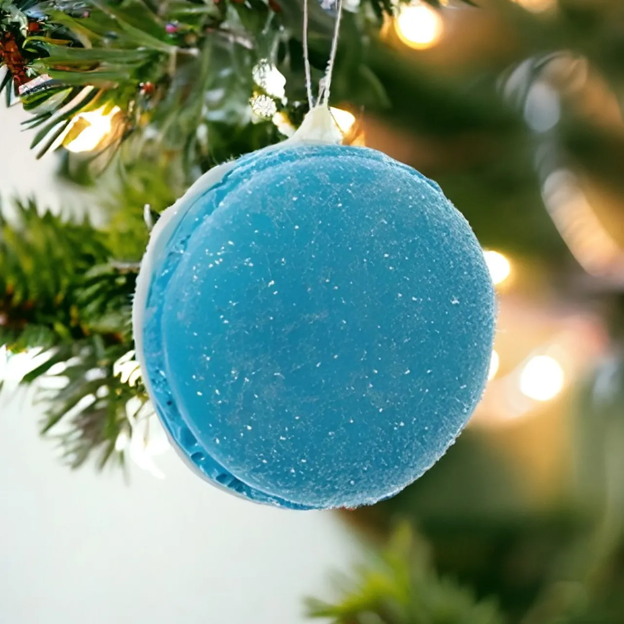 Dive into a winter wonderland with Kurt Adler’s Blue Mini Macaroon Ornament. This 1.5″ foam delight is frosted with glitter, evoking icy winter magic. It’s a sweet replica of the beloved macaroon, bringing a dash of Parisian charm to your tree.