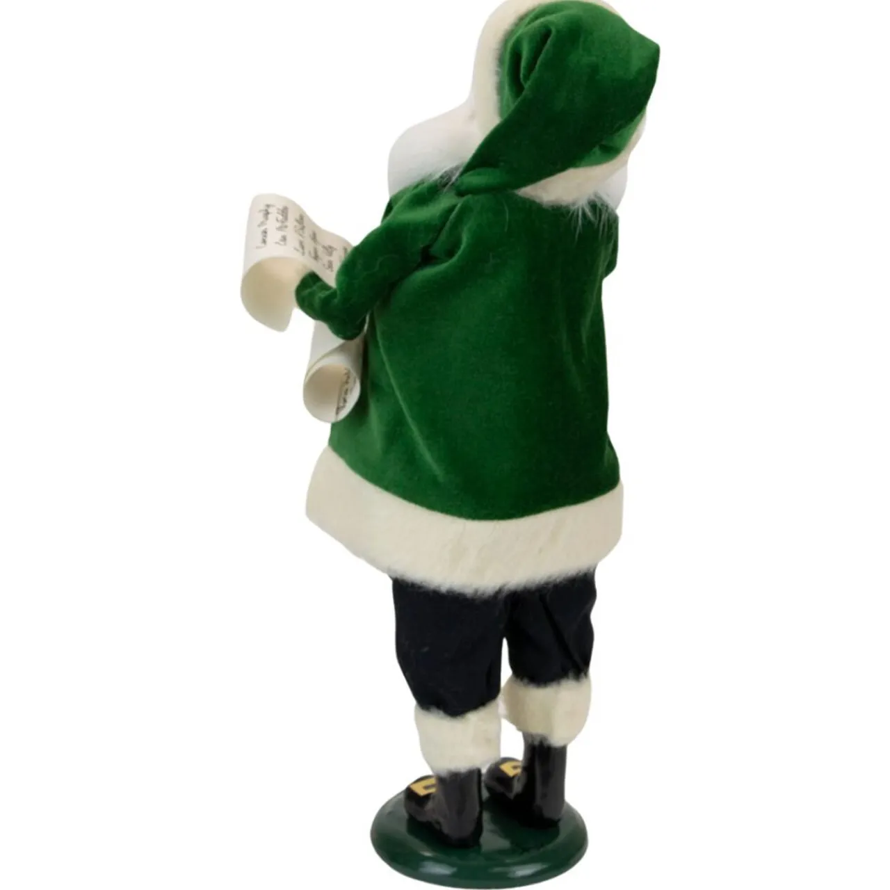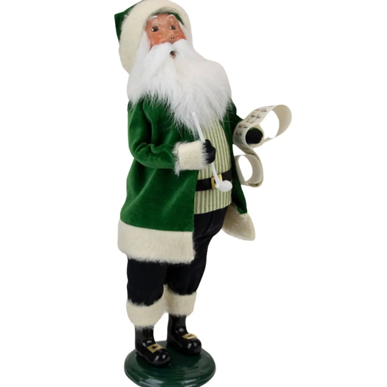 This enchanting figure dons a vibrant green coat, bringing the spirit of Irish cheer right into your home. Carrying a list and traditional Irish pipe, this Santa is a unique addition to your holiday decor.