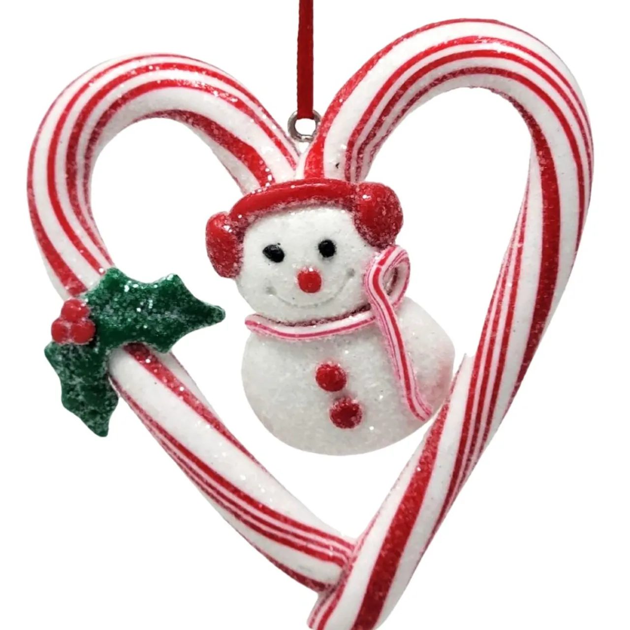 This adorable claydough candy cane heart with snowman ornament is a great addition to any sweet themed tree.