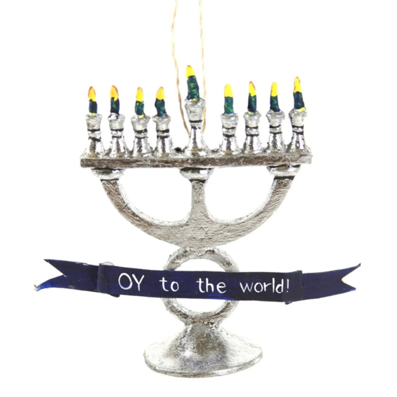 Introducing the unique “Oy To The World” Christmas Ornament by Cody Foster, a perfect blend of Hanukkah and Christmas sentiments. Crafted with precision from high-quality glass, this ornament showcases a brilliantly lit Menorah, radiating festive vibes. The highlight is its playful banner reading “Oy to the world!”, adding a touch of humor and inclusivity. Whether you’re celebrating Hanukkah, Christmas, or both, this ornament stands as a symbol of joyous fusion. An ideal gift or addition to your holiday decor collection, ensuring smiles and merriment.