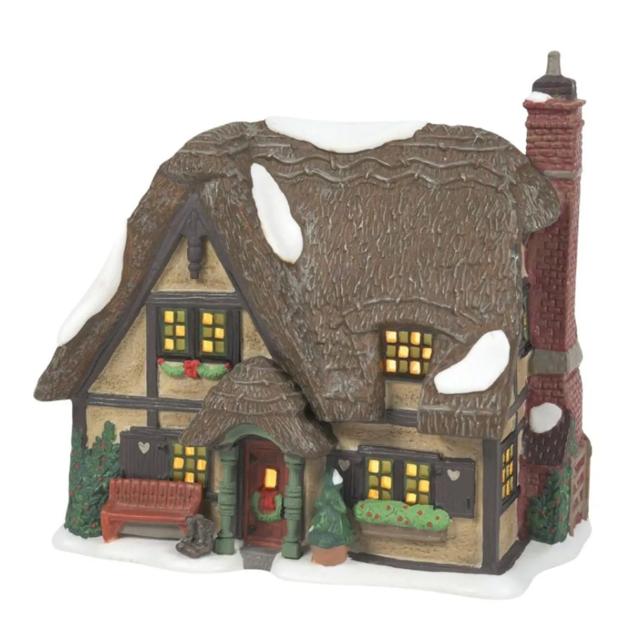 Step into the charm of a Dickens village with the Master Thatcher’s Cottage from Department 56. This quaint thatched-roof home exudes warmth and nostalgia, featuring snow-dusted details, glowing windows, and classic English cottage design.