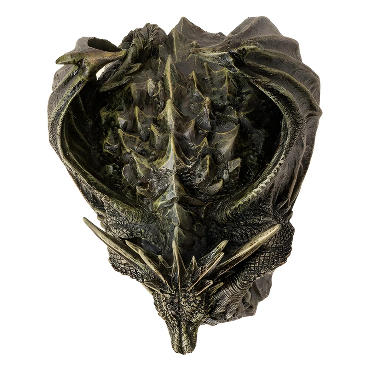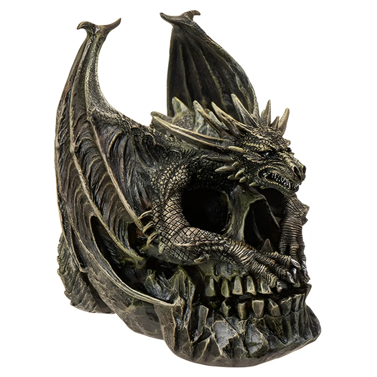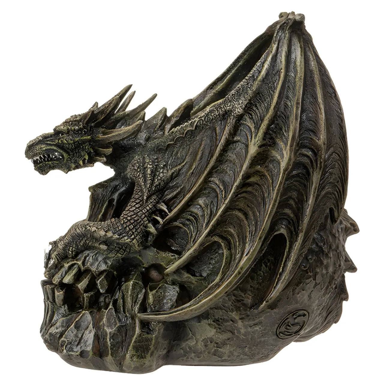 Summon the mystique of dragons with the Draco Dragon Skull. Crafted from cold cast resin, this striking piece is perfect for fantasy enthusiasts.