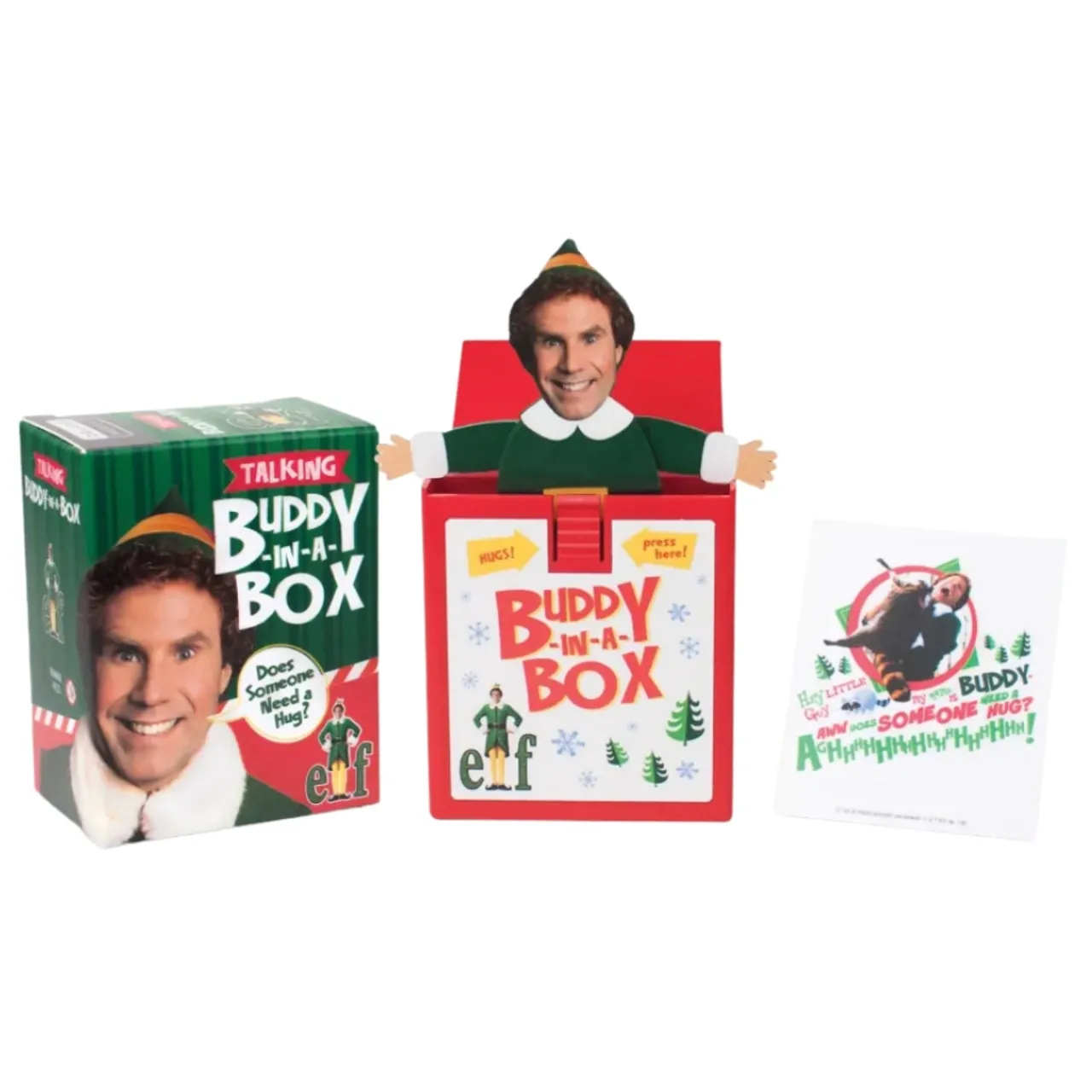 Bring the holiday hilarity of Elf to life with the Talking Buddy-in-a-Box! Inspired by the unforgettable raccoon scene, this pop-up ornament features Buddy the Elf and plays the classic “Does someone need a hug?” line in Will Ferrell’s voice.