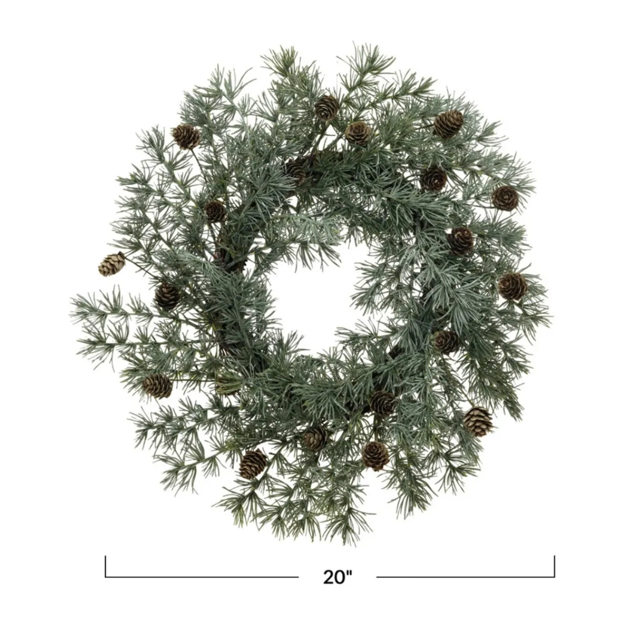 Add a classic touch to your decor with this 20-inch round faux Atlas cedar wreath. Its lifelike greenery is complemented by natural pinecones, bringing a rustic yet elegant look to any space.