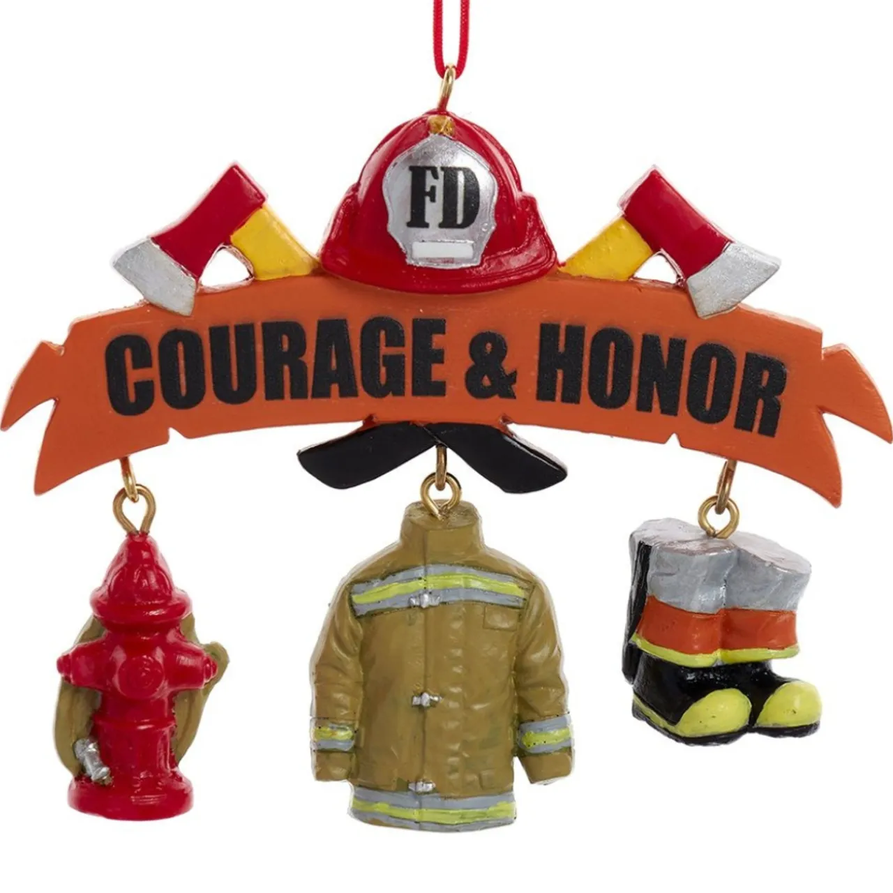 Introducing our latest product, the 4-inch Firefighter Dangling Ornament! This unique ornament is the perfect way to honor the bravery and courage of our firefighters. The Firefighter Dangling Ornament features a fire hydrant, coat, and boots, all dangling from a banner that reads “Courage & Honor.” The banner is adorned with a firefighter’s helmet and crossed axes, representing the strength and bravery of these heroes. This beautiful ornament is crafted by skilled artisans using high-quality materials to ensure that it will last for years to come. It also comes with a sturdy loop for easy hanging on your tree or wreath. Order your 4-inch Firefighter Dangling Ornament today and show your support for the brave men and women who risk their lives to protect us every day. It’s the perfect gift for anyone who wants to honor the courage and sacrifice of our firefighters.
