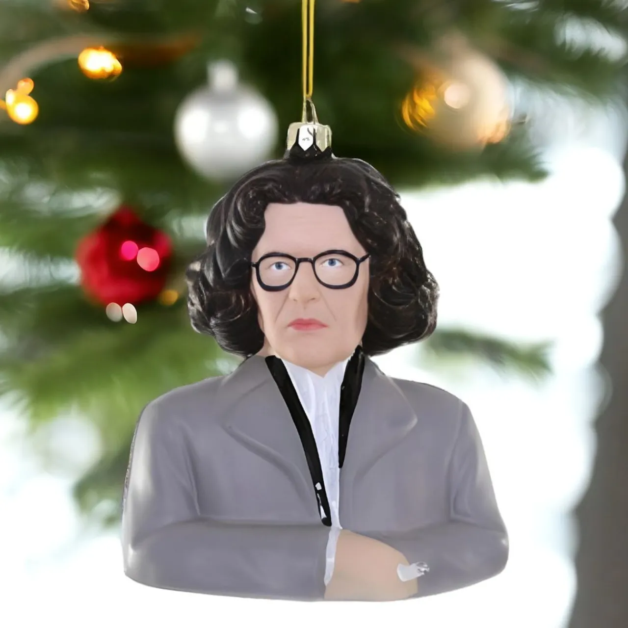 Hang wit and wisdom on your tree with our Fran Lebowitz Figure Ornament. A striking depiction, this ornament captures Fran’s signature style from her bold glasses to the classic blazer.