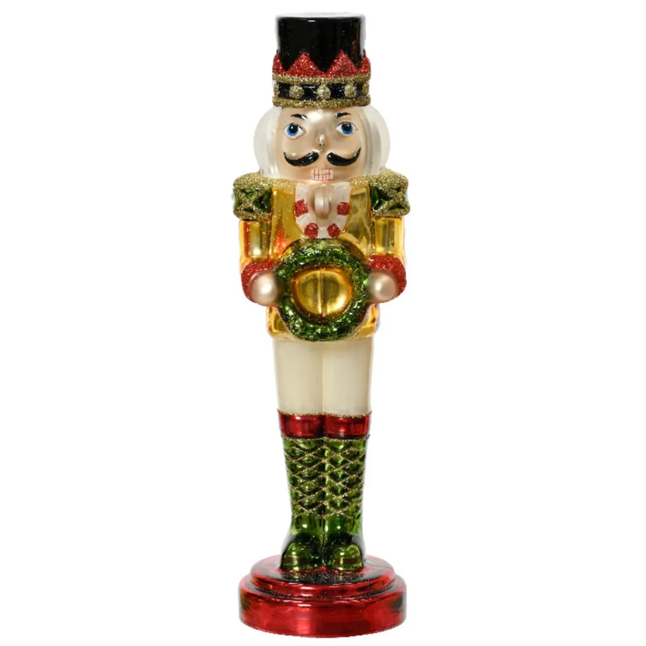 Introducing our 12″ Glass Nutcracker figurine, a sophisticated fusion of classic design and modern aesthetics. This captivating piece boasts a striking black hat, adding depth and contrast to its gleaming glass silhouette. Tailored for those with a penchant for unique festive decor or discerning collectors, this glass nutcracker stands as a testament to meticulous craftsmanship. With its robust base and reflective finish, it’s destined to become an iconic centerpiece in any holiday display. Choose our Glass Nutcracker with a black hat and immerse your space in a blend of tradition and contemporary chic.