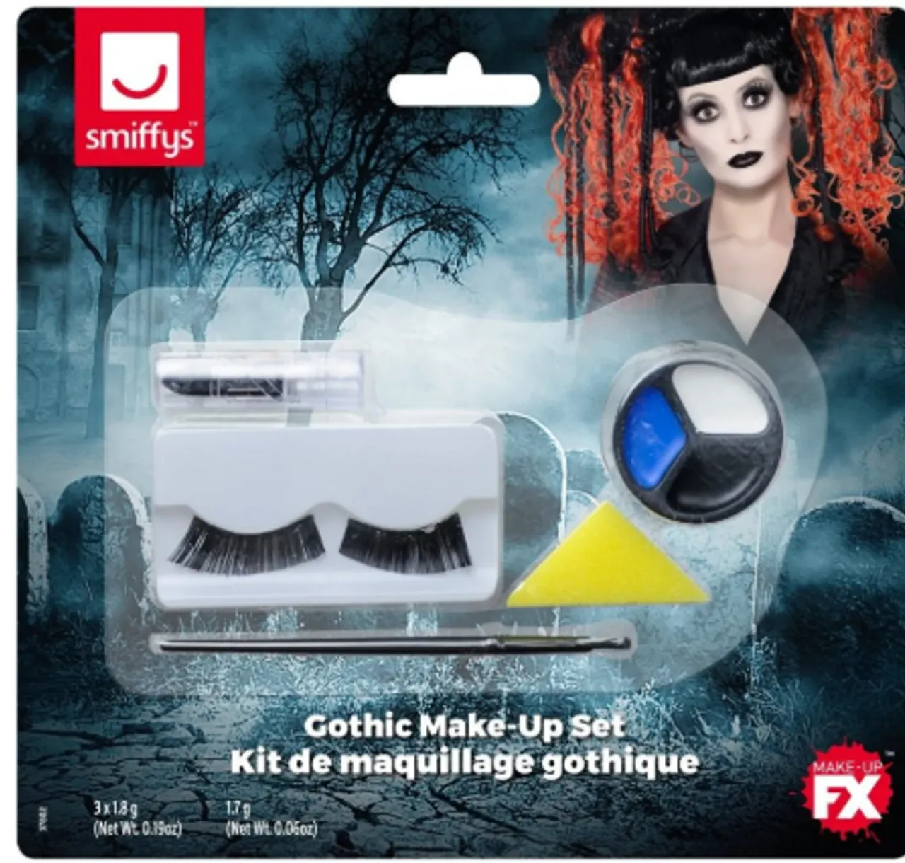 Complete your Gothic fancy dress costume with this Gothic Make-Up Set. This set includes face paint, lipstick and eyelashes.