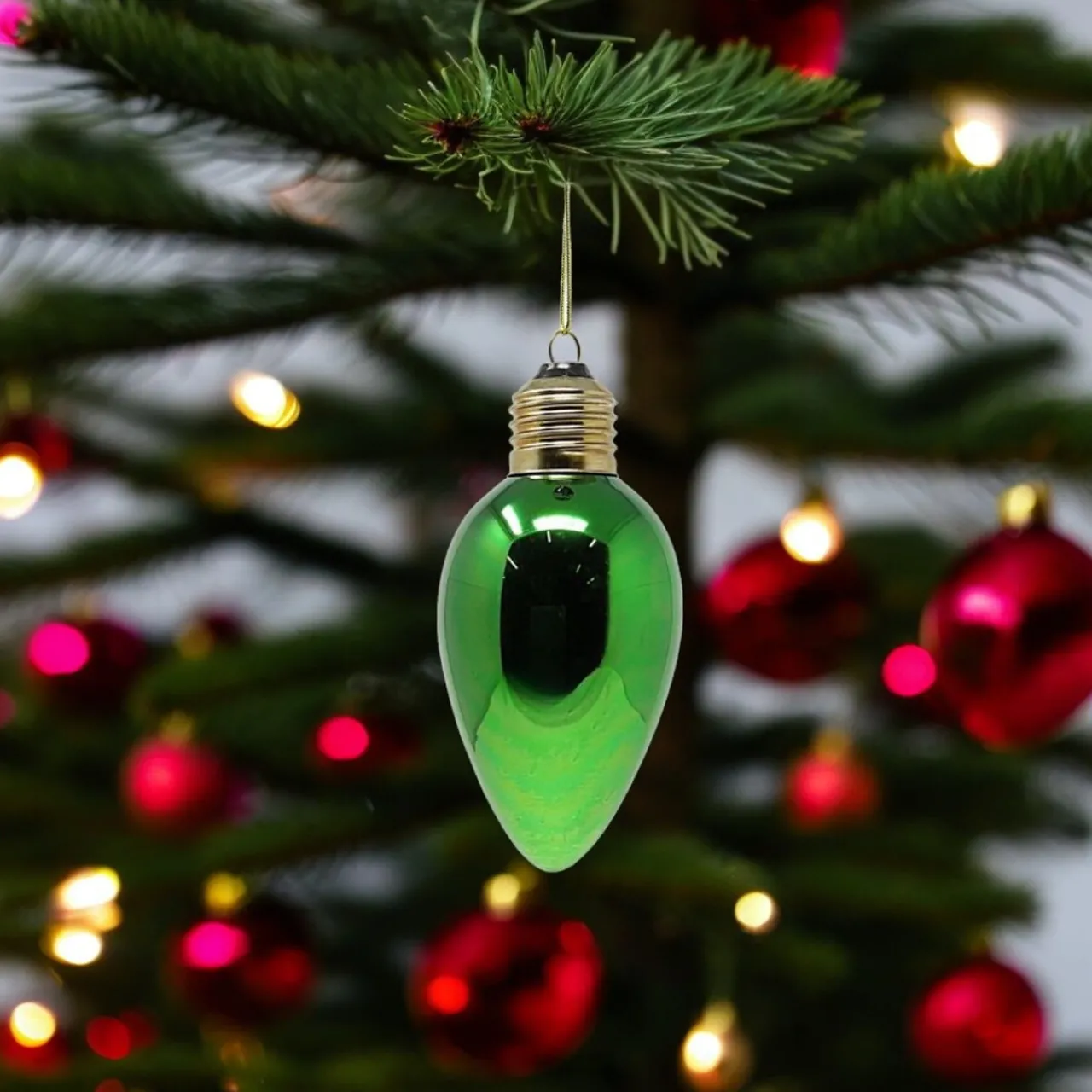 Brighten up your holiday decor with this Green Light Bulb Ornament. Designed to resemble a classic Christmas light bulb, this ornament adds a pop of festive color to your tree. Made from durable materials with a glossy finish, it’s both eye-catching and long-lasting.