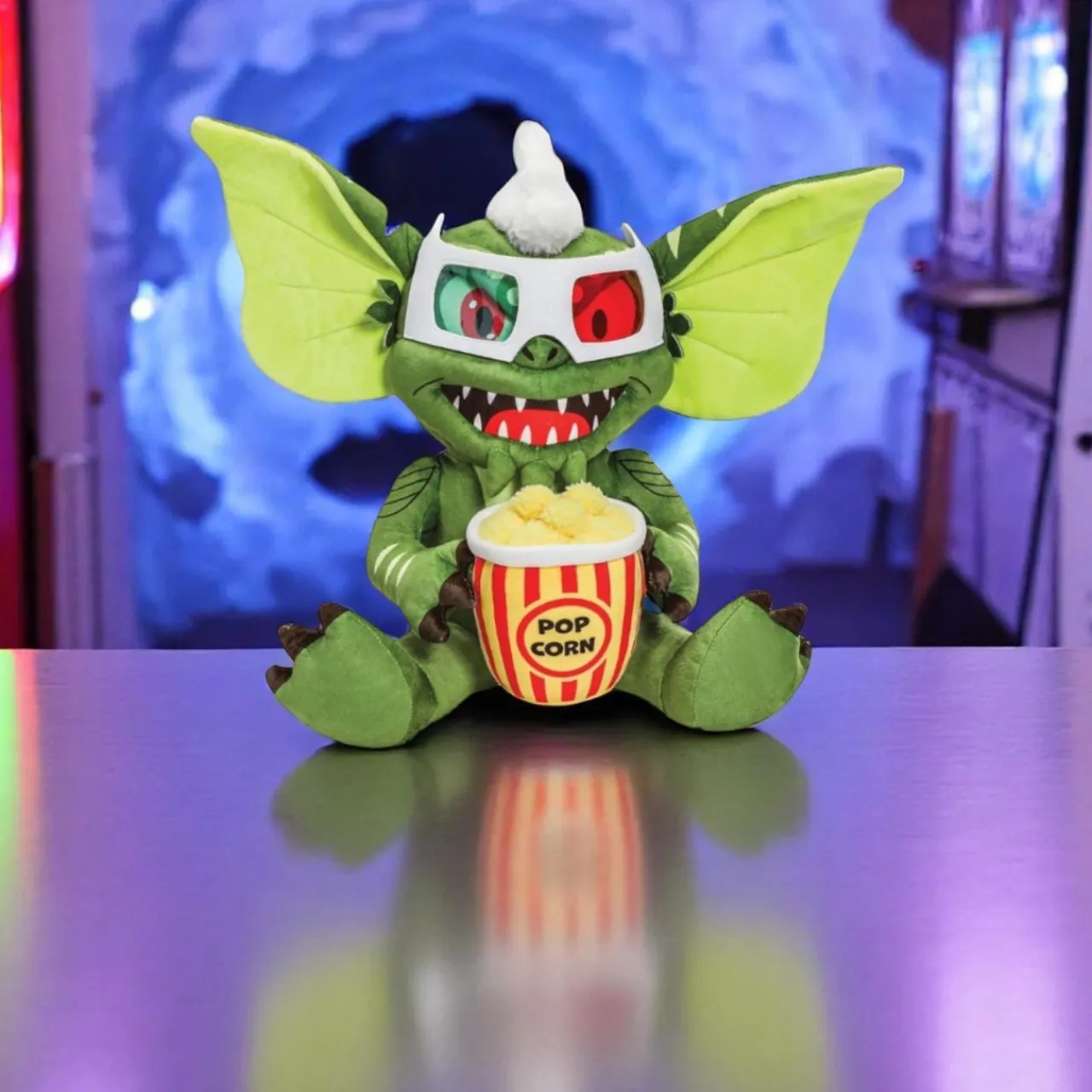 Say hello to mayhem with a side of cuddles! This Gremlins Hug Me Stripe Plush features the mischievous Stripe in full movie-night mode—sporting 3D glasses and clutching a fluffy popcorn bucket. Super soft and vibrantly detailed, this plush brings cinematic chaos to your collection without breaking any midnight snack rules.