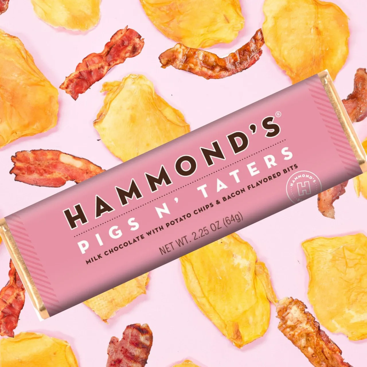 - Hammond’s Candies Pigs ‘N Taters Milk Chocolate Candy Bar