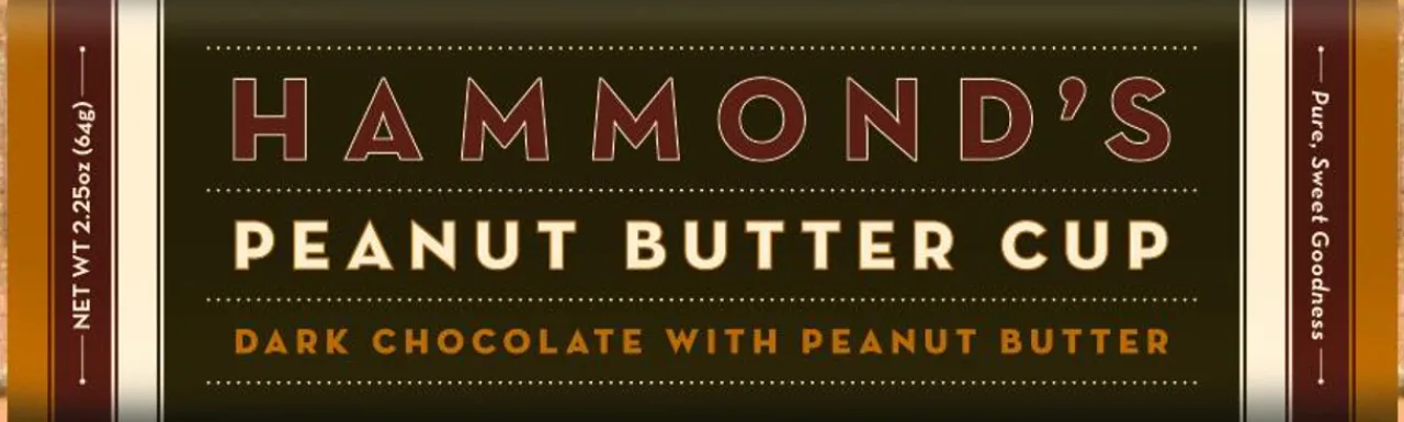 Give in to the tempting combination of peanut butter and chocolate! This gourmet candy bar features decadent dark chocolate with tasty bits of peanut butter. Craving creamy milk chocolate or decadent dark? Hammond’s handmade chocolate indulgences come in a variety of flavors, from classic Peanut Butter Cup to exclusive Bourbon Pecan Pie.