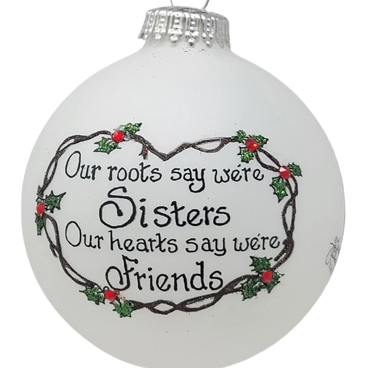 Sisters and Friends Ornament by All American company Heart Gifts by Teresa, this Hand Painted Glass Ornament is especially designed for Sisters, and proudly source all decorative materials used from American companies – this wonderful glass ornament is inscribed with: