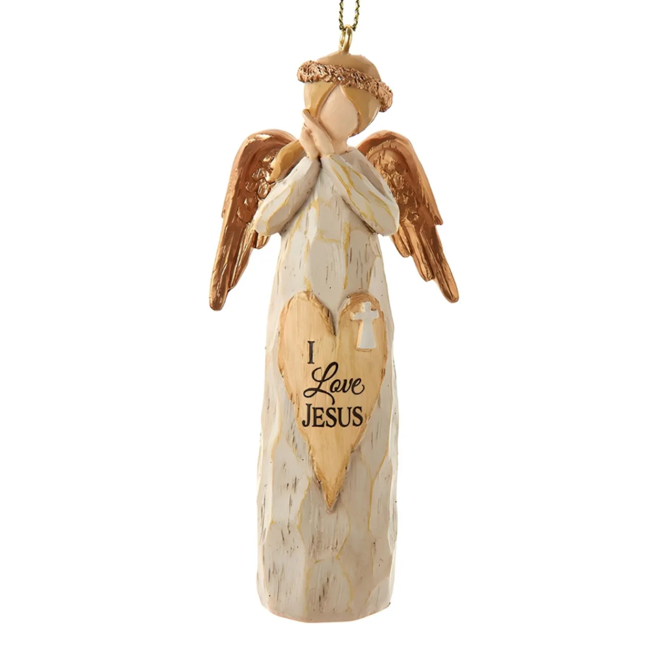 Embrace your faith with the I Love Jesus Angel Ornament, standing at 4 inches and gracing your space with a message of love. Crafted with care from resin, this Kurt Adler A2295 ornament carries a peaceful presence.