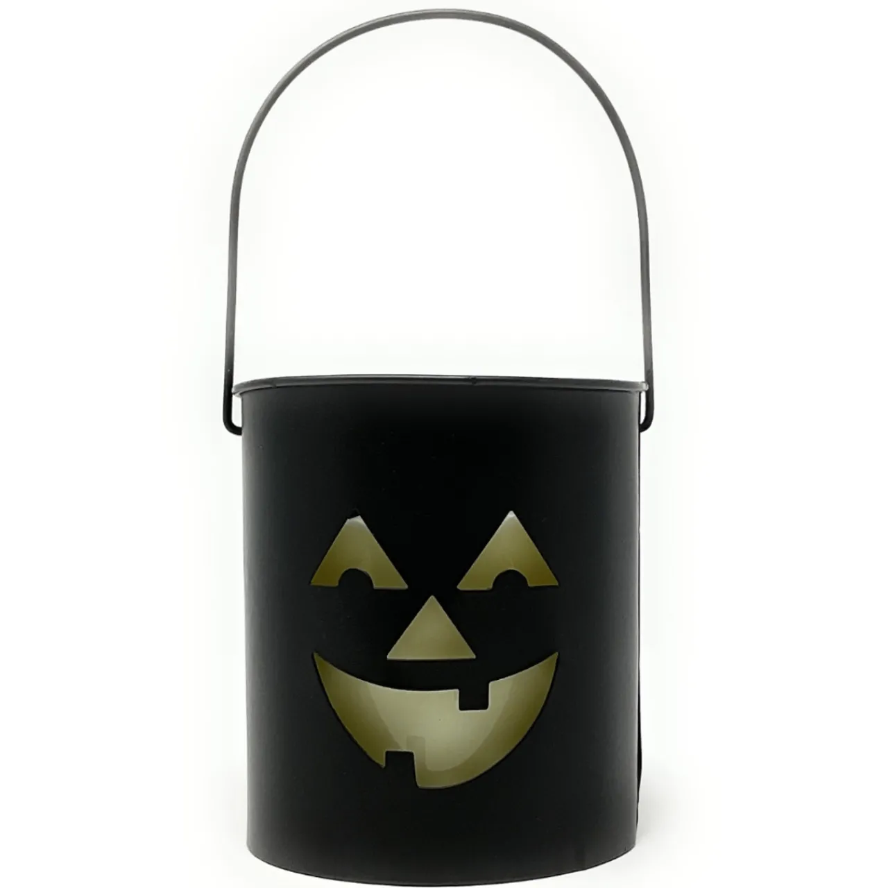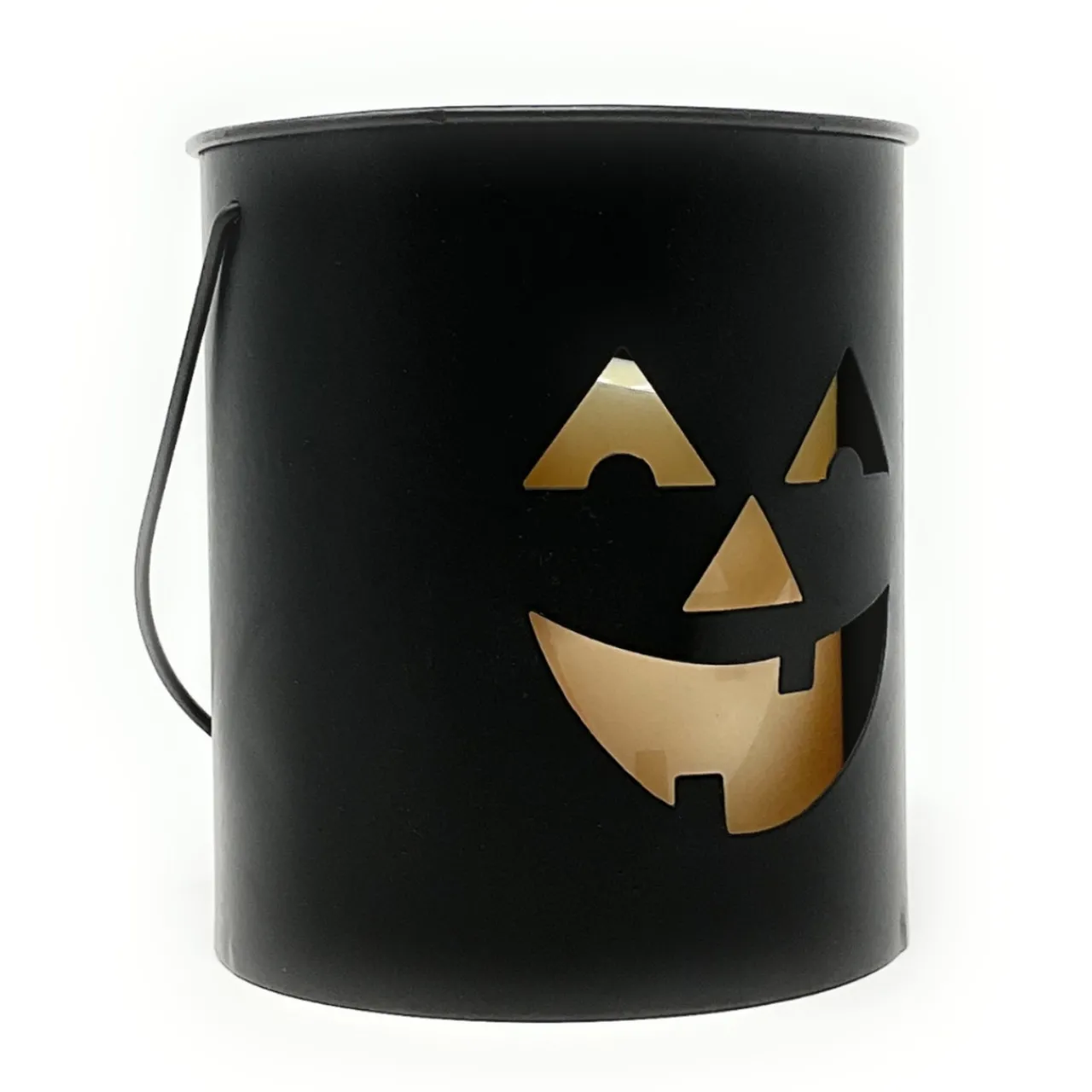 This charming Jack-O’-Lantern luminary brings the spirit of Halloween to your home with a flicker of mischief. Crafted from durable black metal, it’s designed to house a 3″ LED candle, casting playful shadows through its cut-out pumpkin face.