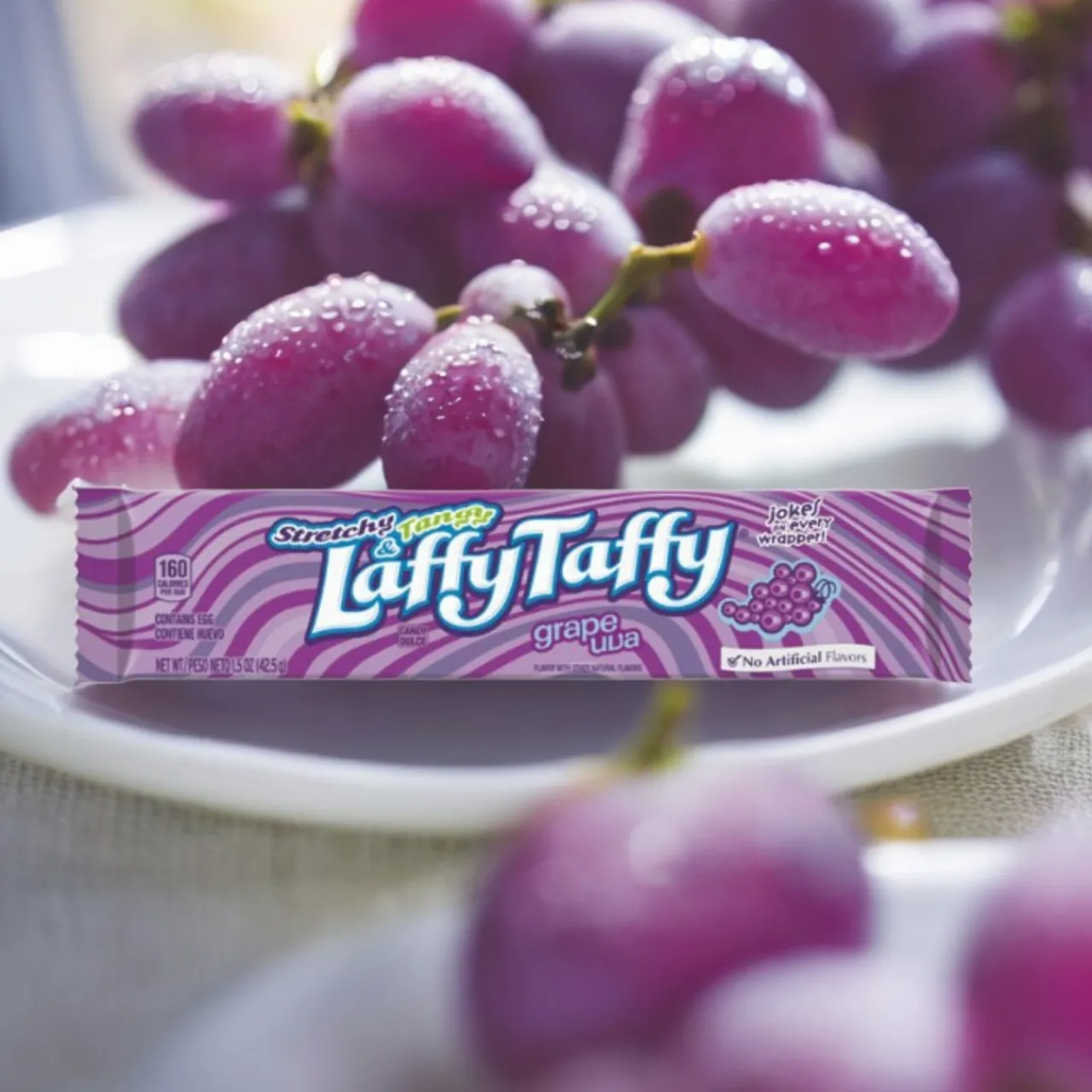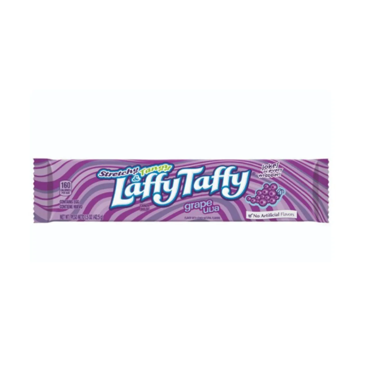 Unwrap a smile with Laffy Taffy Stretchy & Tangy Grape Bar! Each bar is packed with a burst of juicy grape flavor and a laugh, thanks to jokes on every wrapper. This candy bar is not just stretchy and fun to eat but also offers a tangy twist that tickles your taste buds.