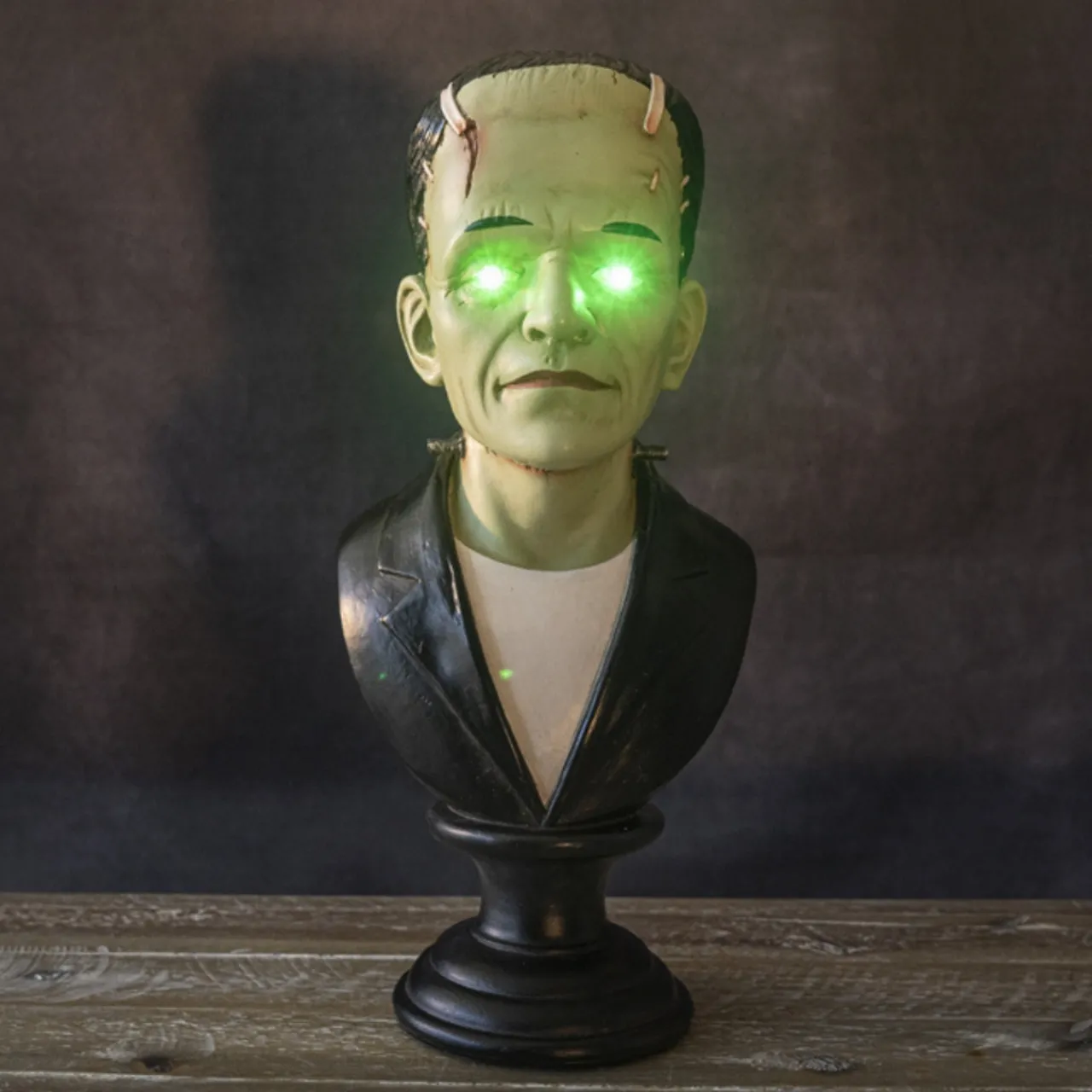 Illuminate your gothic collection with the LED Frankenstein Bust, a chilling homage to iconic horror. Eyes glow, perfect for any macabre decor enthusiast.