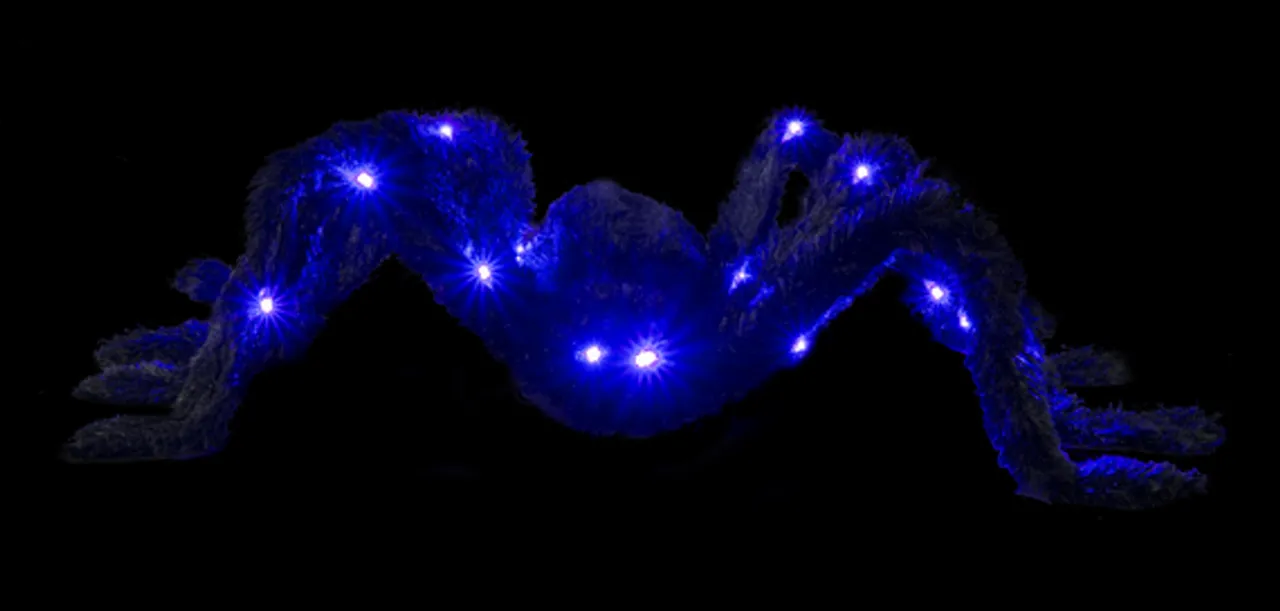 This spooky spider is a great addition to any setting, day or night! Contains 26 purple LED lights to make glowing eyes and legs.