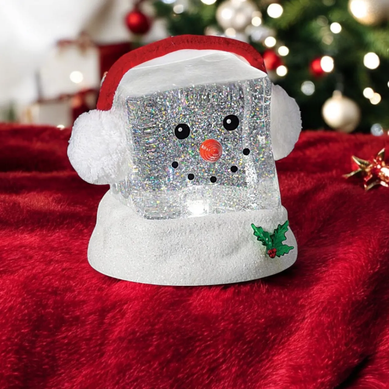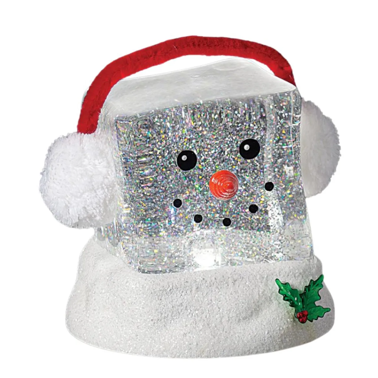 Add a dazzling touch to your holiday decor with this Lighted Cube Head Snowman Swirling Shimmer! This unique snowman features a sparkling cube-shaped head filled with swirling glitter that shimmers when illuminated.