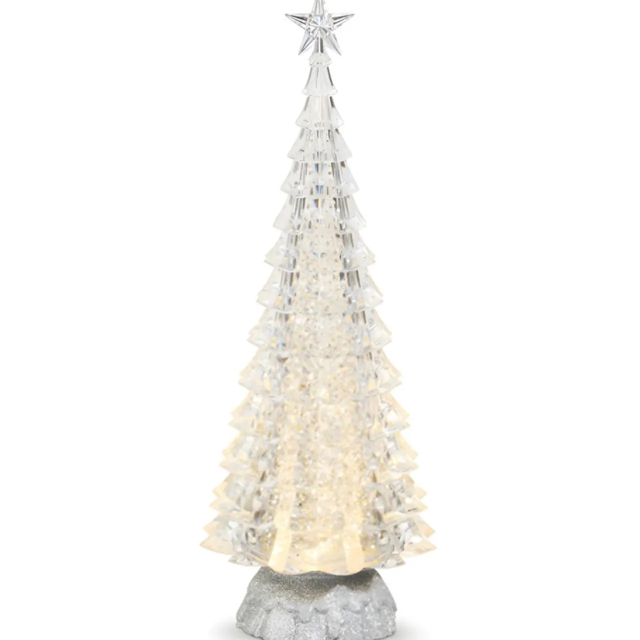 Add sparkle to your holiday decor with this 15″ Silver Tree featuring swirling glitter and a built-in light. The clear, faceted design creates a dazzling effect that catches the light beautifully.