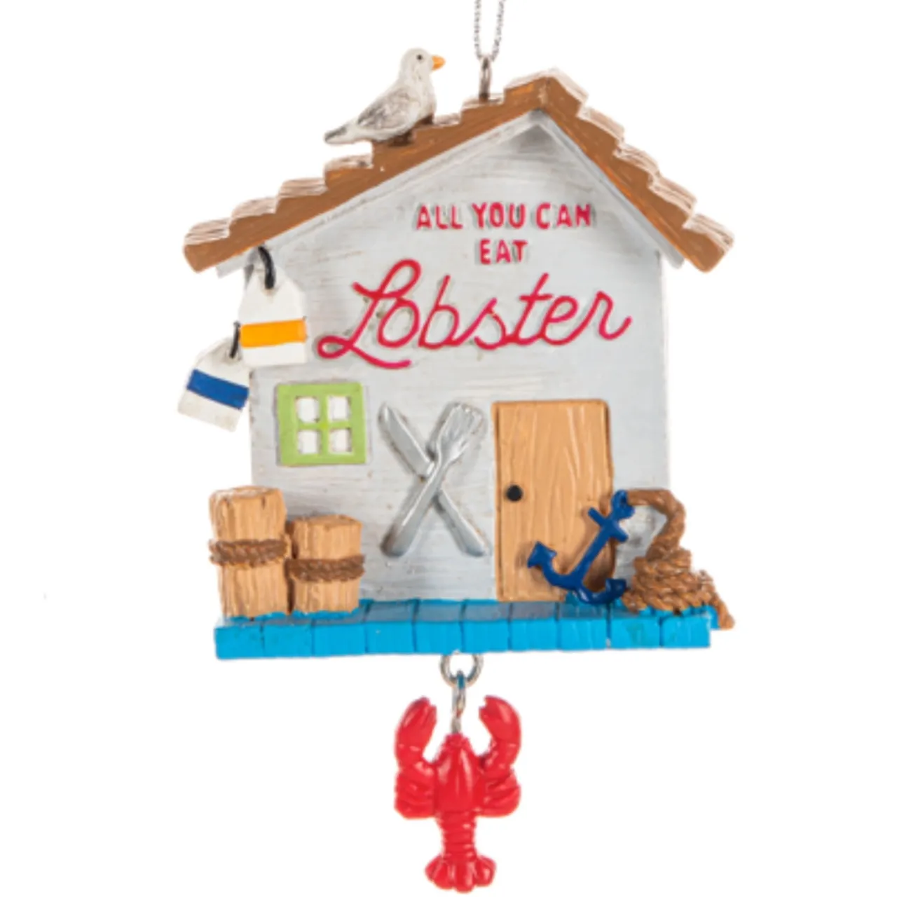 Introducing our charming 4-inch Lobster Shack Ornament, a delightful addition to your nautical-themed decorations. This adorable ornament showcases a lobster shack with the sentiment “All You Can Eat Lobster” for a touch of coastal charm. Hanging from a silver string, it can be easily displayed in any desired location. Expertly crafted with attention to detail, it captures the essence of seaside dining. Its compact size makes it perfect for adorning Christmas trees, wreaths, or even as a decorative accent all year round. Bring the taste of the ocean to your holiday festivities with our Lobster Shack Ornament. Order now and let the coastal vibes shine!