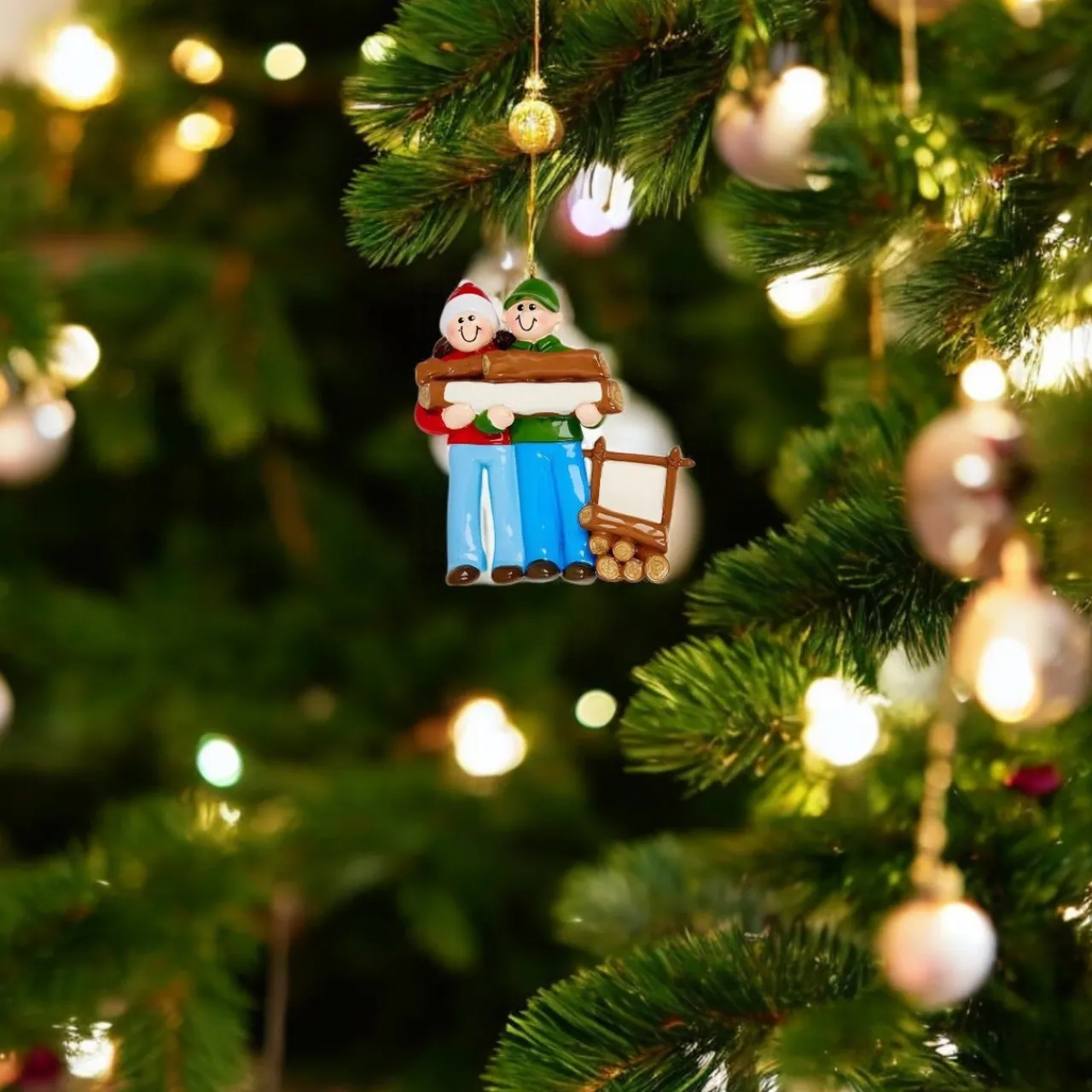 Celebrate cozy winter moments with the Log Couple Personalized Ornament! Featuring a cheerful couple bundled up and carrying logs for the fire, this adorable design is perfect for commemorating shared adventures or cozy evenings by the fire. With space for personalization, it’s an ideal gift for couples or families who love the great outdoors or a warm, rustic vibe.