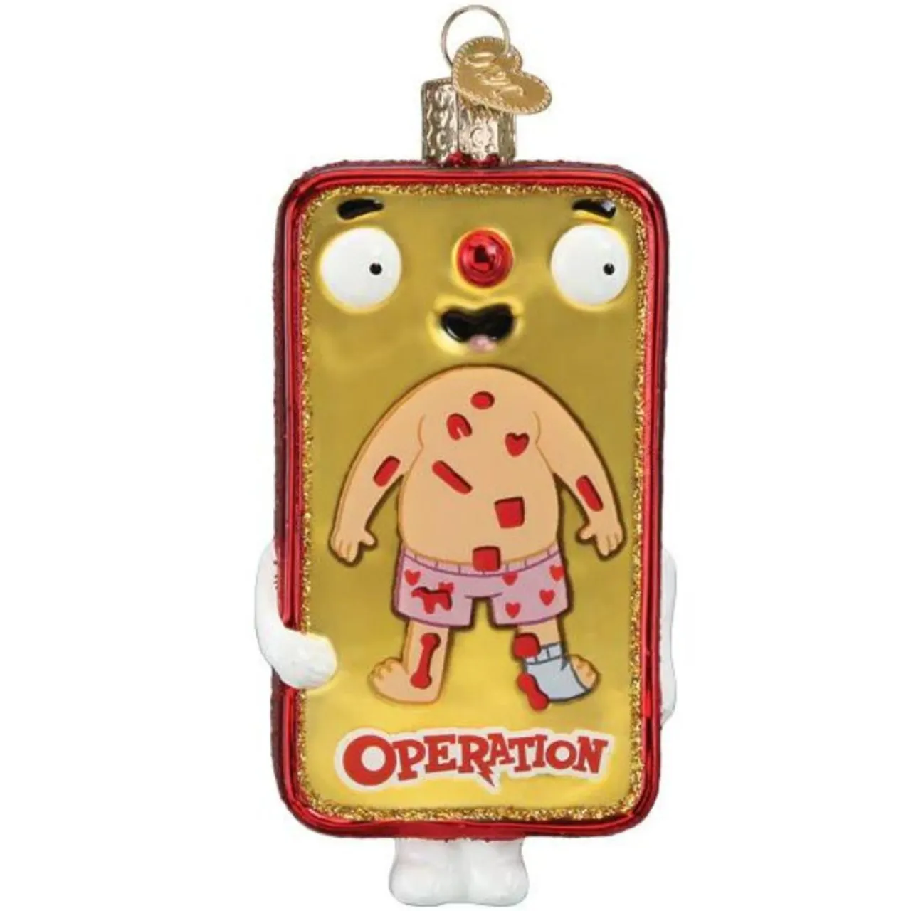 Remember playing Operation as a kid? Now you can relive those memories with our Hasbro Operation Game Ornament! Made from high-quality blown glass, this ornament stands at 2.25 inches high and is the perfect way to add some nostalgic charm to your Christmas tree. This ornament features the classic Operation game board, Cavity Sam needs players to help to recover from ailments such as a wishbone, Charlie Horse, Adam’s apple and funny bone. A steady hand is key to heal Sam and win the game. Celebrate the holiday season with a blast from the past with our Hasbro Operation Game Ornament – order yours today and make this Christmas even more special!