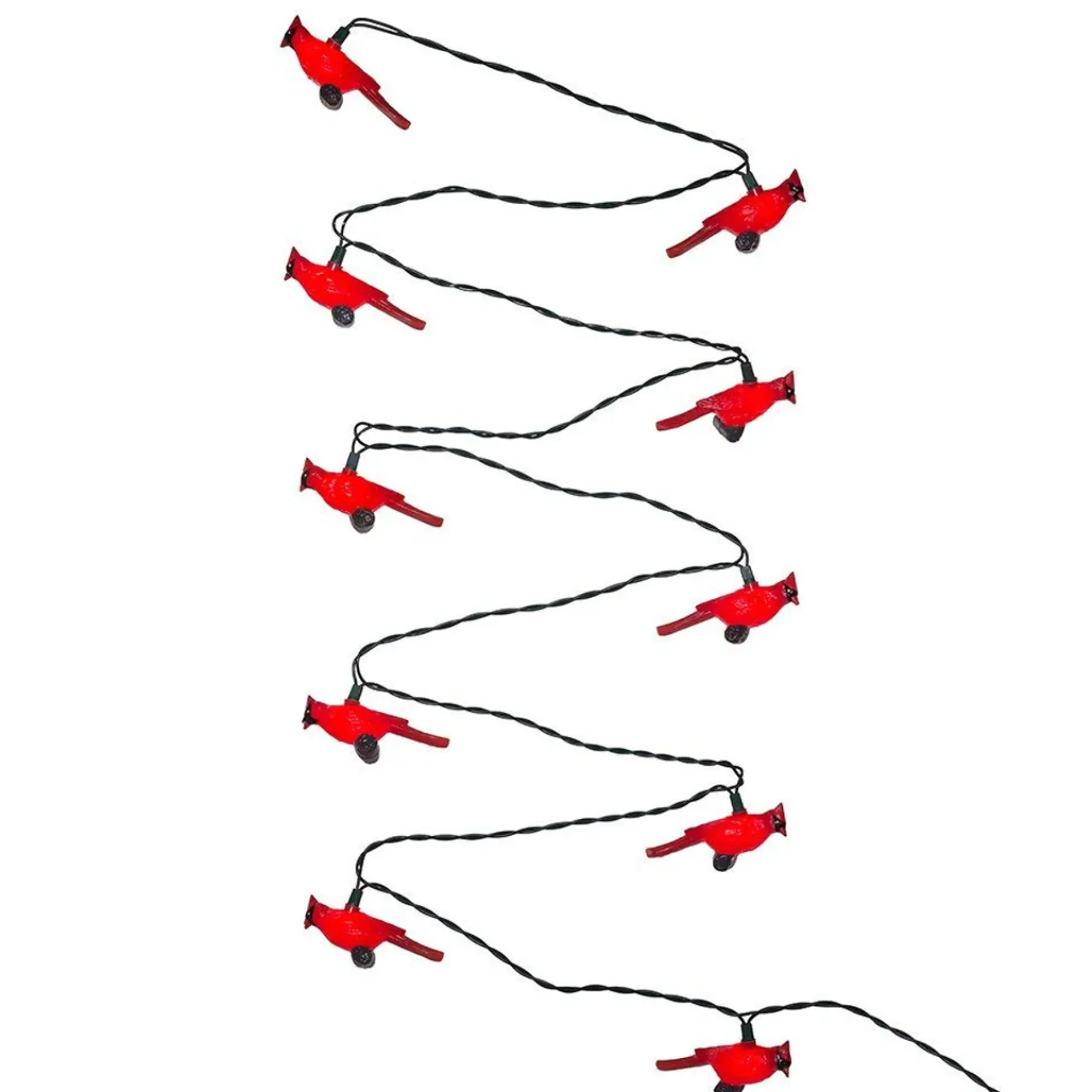 This novelty light set features 10 red cardinal lights with 30-inch lead wire, 12-inch spacing, cut green wire,
