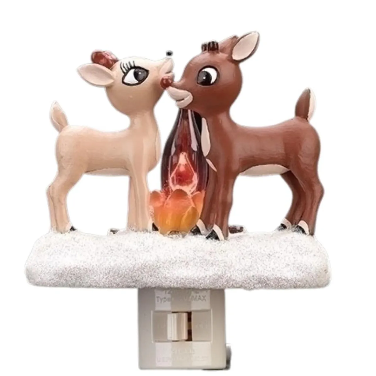 This adorable night light features Rudolph & Clarice nuzzling by the campfire to keep warm, with a flickering bulb to give off an illuminating orange glow.