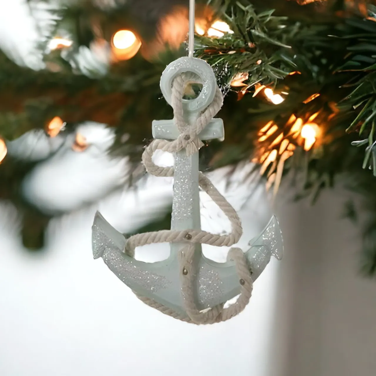 Set your sights on a coastal Christmas with our Sea Foam Green Glittered Anchor Ornament. Measuring 4.75″, this Kurt Adler adornment brings the ocean’s tranquility home. Its sparkling sea foam green, combined with natural rope and shimmering glitter, captures a beachy essence.